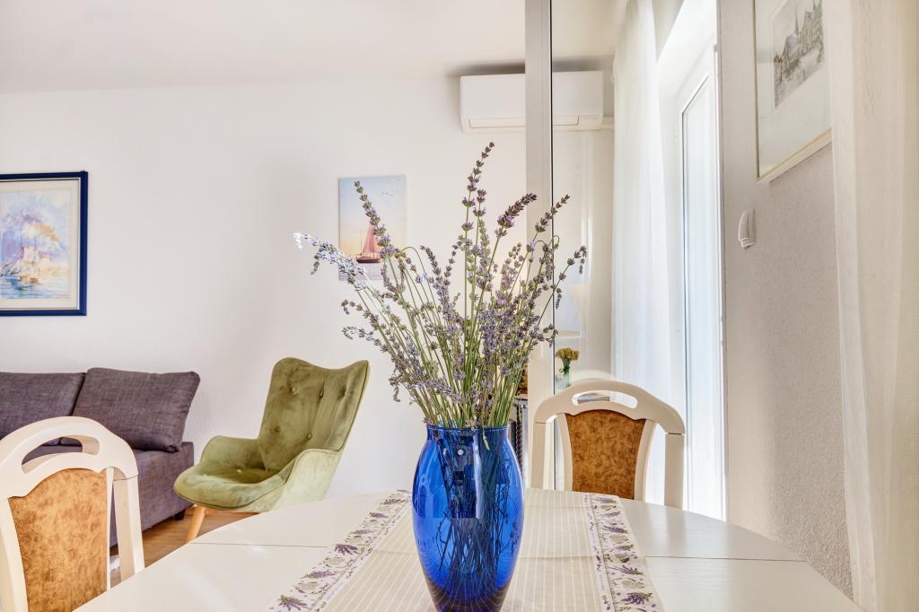 Apartma Blanka 1 je idealen za vaše počitnice, saj lahko sprejme 3 osebe. Ponuja spalnico z zakonsko posteljo, dodatno spalnico za eno osebo, dnevno sobo, jedilnico, kuhinjo in kopalnico. Dodaten prostor za sprostitev in druženje nudi prostorna terasa s pogledom na vrt. Dodatne ugodnosti vključujejo WiFi, klimatsko napravo in zasebno parkirišče, zaradi česar je to stanovanje praktična in udobna izbira za vaše bivanje.