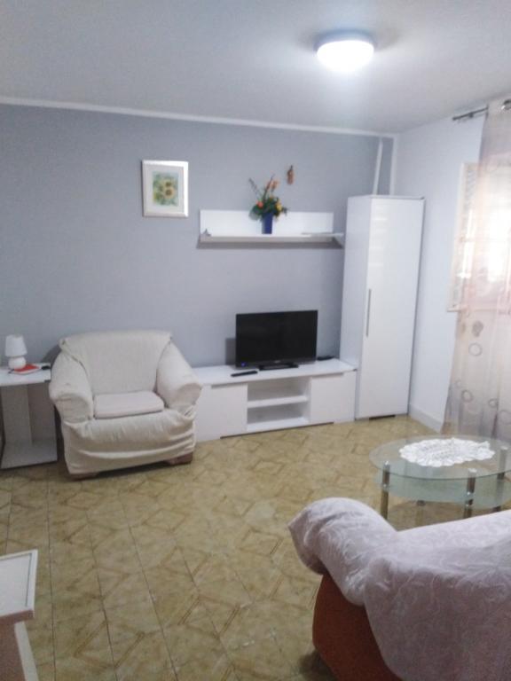 Z namestitvijo in gostoljubnostjo gostitelja smo zelo zadovoljni, apartma je prostoren, zelo urejen in čist, z vsem kar potrebujete za brezskrbne poletne počitnice, velik plus je tudi parkirišče v senci pred namestitvijo, lokacija odlična, vse blizu (trgovina, pekarna, lekarna, riva). Najlepša hvala gostiteljem in veliko priporočilo z naše strani.