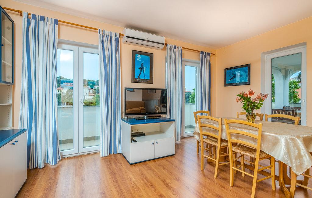 Preberite več Namestitvene enoteZa rezervacijo apartmaja je potrebno plačati 30 % vnaprej, preostanek plačate na licu mesta v gotovini (HRK ali EUR). Dobrodošli so majhni in srednje veliki hišni ljubljenčki lepega vedenja (doplačilo 10 EUR na dan in predhodna najava). Prihod: od 14. ure / Odhod: do 10. ure. Cenik se nanaša na tedensko bivanje. Po želji je možno krajše bivanje (odvisno od datuma).