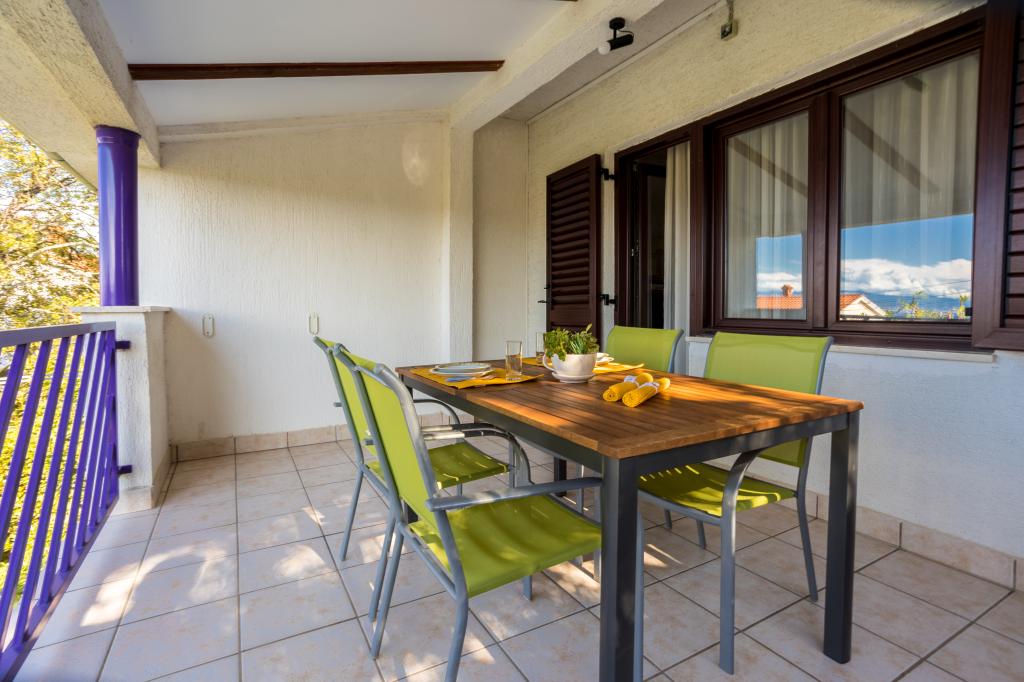 Apartma Val je 250 m od čudovitega zaliva Rova in 1500 m od centra Malinske. Zaradi bližine plaže, restavracije, trgovine in pekarne je naš apartma idealna izbira za vaše družinske počitnice. Apartma se nahaja v prvem nadstropju in ima eno spalnico z zakonsko posteljo, raztegljiv kavč kot ležišče za eno osebo, opremljeno kuhinjo, teraso s pogledom na morje in eno parkirno mesto.