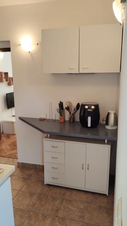 S tem apartmajem smo bili zelo zadovoljni. Glede na svojo majhnost je izredno funkcionalen in lepo urejen, tudi prostorska razporeditev je odlična. Pozitivno smo bili presenečeni nad opremljenostjo: tukaj smo našli vse kar smo potrebovali in še mnogo več, kot recimo vrečke za led, slamice in plastične kozarce za otroke, aparat za kavo, dodatne razdelilce električnega toka, orodje, žarnice itd.. Vidi se, da je g. Dubravko, ki je tudi sicer zelo ustrežljiv, vanj vložil veliko truda in premišljenosti. Pika na i je prostorna terasa z jedilno mizo, nizko sedežno garnituro in ležalnikom. Tudi lega apartmaja je ugodna, saj ga ni potrebno dodatno hladiti s klimo - to nam je še posebej ustrezalo, ker imamo malega otroka. Ker je tako smiselno opremljen in udoben za bivanje, smo se v tem apartmaju hitro počutili kot doma, brez da bi karkoli pogrešali. Skratka, brez zadržkov priporočamo!