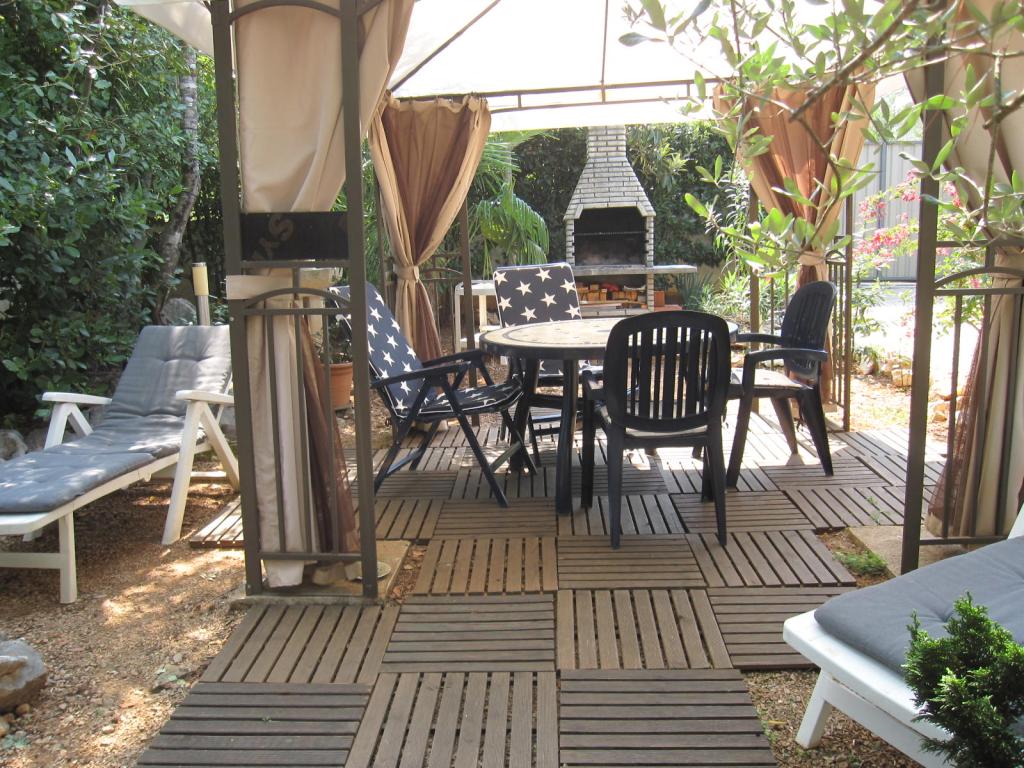 Studio apartma za 2 osebi, v mirnem delu mesta, 150 metrov od morja, z vrtom ali teraso na vrtu. Apartma ima opremljeno kuhinjo (štedilnik, hladilnik z majhnim zamrzovalnikom, električni grelnik vode, kuhinjski pripomočki, jedilni pribor ...), spalni del z udobno posteljo, kopalnico s tušem, TV, WiFi, klimatsko napravo ... Na voljo so vrtno pohištvo, brisače, posteljnina. Parkirišče je zagotovljeno in brezplačno. Nepremičnina se nahaja 3 minute hoje od urejenih plaž v senci. Trgovine, restavracije, kavarne so oddaljene 150 metrov. Center mesta s pristaniščem je oddaljen 10-15 minut hoje ob morju. Prihod od 13. ure, odhod do 10. ure.