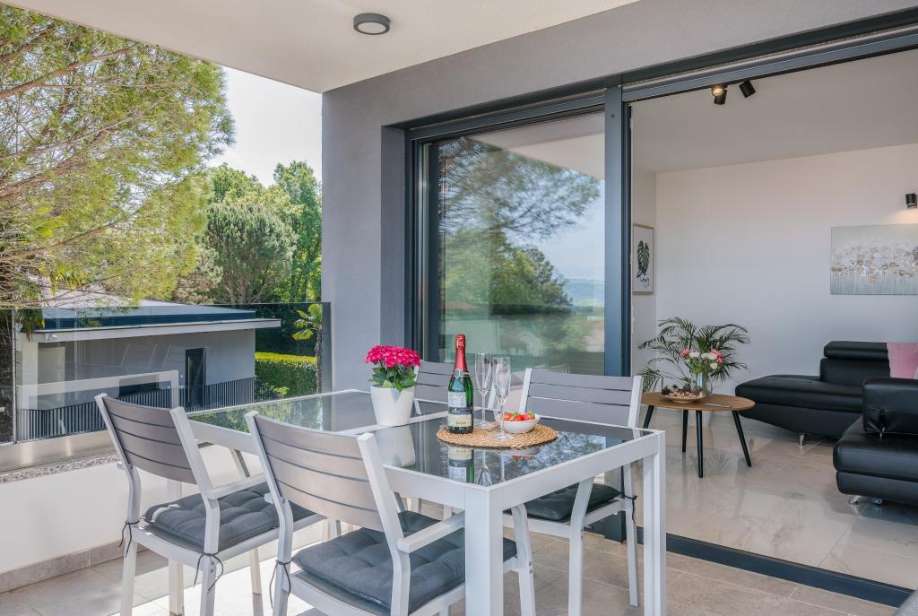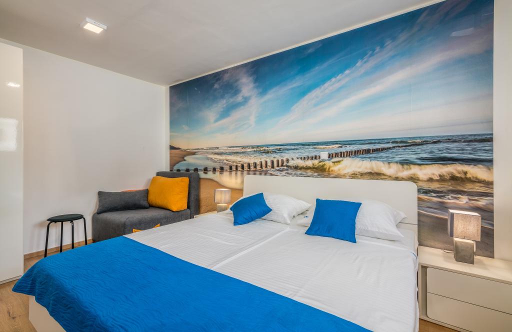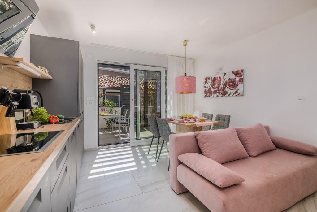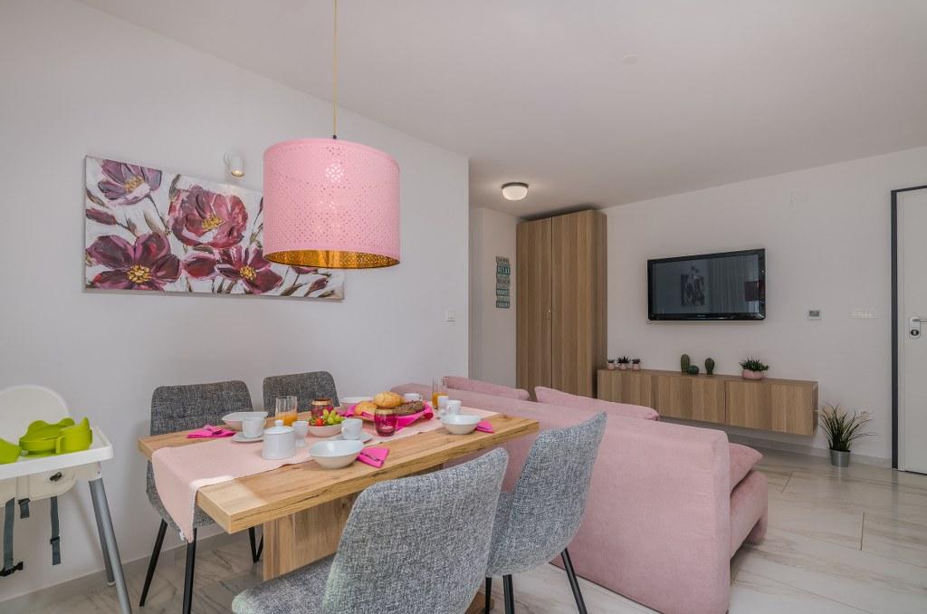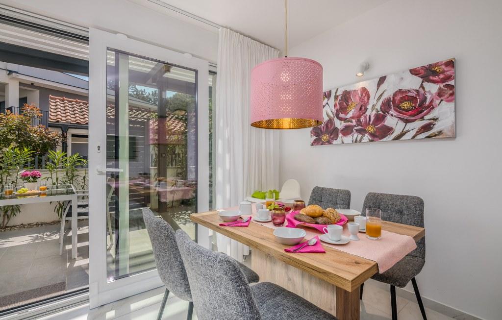 Apartmaji Elle Luxury se nahajajo v Vantačićih, 120 metrov od plaže z naravno senco. So sodobno opremljene in popolnoma opremljene, da bo vaš dopust sproščen in prijeten. Tako imajo vsi apartmaji pralne in pomivalne stroje, klimatske naprave, talno gretje, brezžični internet in satelitsko TV. Apartmaji v zgornjih etažah imajo pokrite balkone s pogledom na morje, tisti v pritličju pa lastno teraso. Vsakemu stanovanju pripada eno parkirno mesto v ograjenem dvorišču.