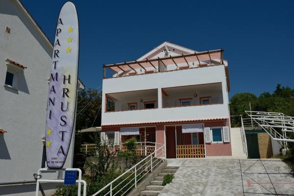 Apartmaji Hrusta, diskretno ločeni od vasi, v mirnem zelenem okolju, s čudovitim panoramskim pogledom na morje. Vsi apartmaji imajo WiFi, SAT, TV, parkirišče na dvorišču ali na dovozu in klimatsko napravo, vsi vključeni v ceno. Plaža je 5 minut vožnje z avtomobilom ali 20 minut hoje. Apartmaji v prvem nadstropju (A4 2) imajo 2 spalnici, dnevno sobo in kuhinjo ter veliko zasebno teraso s pogledom na morje. Apartmaji v drugem nadstropju (A2 2) imajo 1 spalnico, dnevno sobo in kuhinjo ter veliko zasebno teraso s pogledom na morje. Apartma v pritličju (A2 1) ima 1 spalnico, dnevno sobo, zasebno teraso s pogledom na stanovanje, možen je dostop z invalidskim vozičkom. Vsem gostom je na voljo vrtna hiša z žarom in poletno kuhinjo ter masivne zofe.