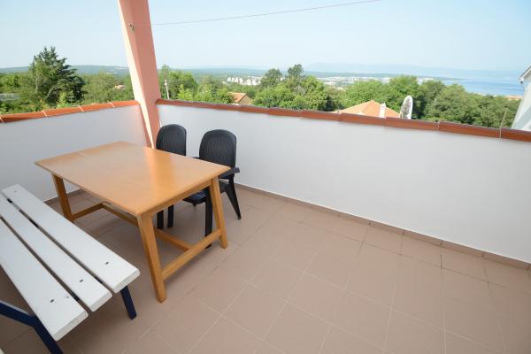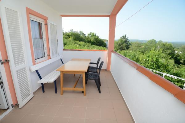 Vsako stanovanje ima poseben vhod. Kuhinja je popolnoma opremljena: štedilnik s pečico, mikrovalovno pečico, hladilnikom in zamrzovalnikom, pa tudi pripomočki za pripravo hrane in postrežba s hrano in pijačo. Jedilnica-dnevna soba je opremljena z LED TV s satelitskim sprejemnikom. Ločena spalnica (ena ali dve) in WC kopalnica s tušem. Na dvoriščnem vidiku je rustikalni žar in poletna kuhinja. Vsak apartma ima veliko zasebno teraso s čudovitim panoramskim pogledom na Malinsko in celoten Kvarnerski zaliv z nadmorske višine več kot 100m. Posteljnina in brisače so vključeni v storitev in se menjajo vsakih 7 dni. Parkiranje je na dvorišču ali na dovozu. Središče mesta je oddaljeno približno 100 m, pa tudi najbližja trgovina