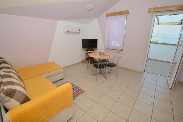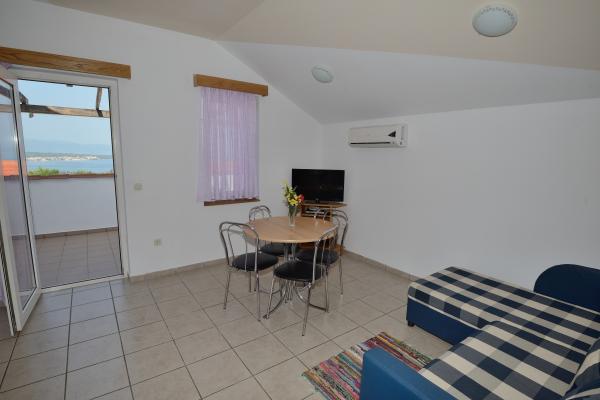 Bivanje v vašem apartmaju nam je bilo zelo všeč, saj je lep razgled na morje, prav tako je tudi vzdušje prijetno. Lastnika sta prijetna in prijazna.