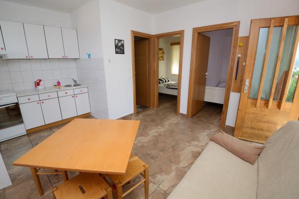 Preberite več Namestitvene enoteTuristična taksa se obračuna 5 kn za osebe, stare od 18 do 18 let, 10 kn za osebe, starejše od 18 let, otroke in invalide s spremstvom pa je oproščena plačila takse. Za rezervacijo je potrebno nakazati polog v višini 100 € na bančni račun, preostanek ob prihodu v gotovini ali s položnico na račun. Počitnice s hišnimi ljubljenčki so možne samo v A2 1, hišni ljubljenček se zaračuna 6 € / dan. Predstavljene cene vključujejo 13% DDV. Prijava: od 14.00 do 18.00 odjava: do 10.00