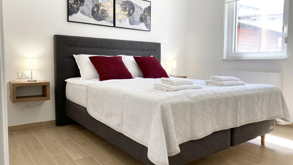 Vila Malina je apartmajska hiša, ki se nahaja v mirnem delu vasi. Ima tri moderno opremljene apartmaje velikosti 50, 55 in 60 m2 z ločenimi vhodi in zavarovanimi parkirnimi mesti na dvorišču. Vsak apartma ima dnevno sobo, spalnico, kopalnico, kuhinjo in pokrito teraso. V dnevni sobi je raztegljiv kavč, ki se lahko uporablja kot dodatno ležišče za dve osebi. Kuhinja je opremljena s posodo, kuhinjskimi krpami, pečico, mikrovalovno pečico, hladilnikom z zamrzovalnikom, grelnikom vode, električnim štedilnikom, opekačem kruha in pomivalnim strojem. Dodatna oprema vključuje internetni priključek, klimatsko napravo, sesalnik, pralni stroj in sušilec za lase. Brezplačna otroška posteljica je na voljo na zahtevo. Za bivanje 10 dni ali več je na voljo 10 % popust.