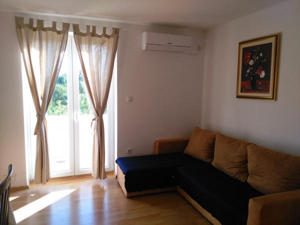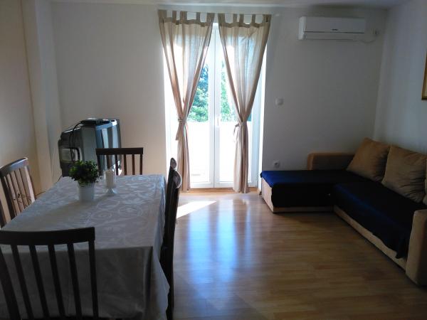 Nikolina apartmaji se nahajajo v mirnem delu Malinske, na mirni in slepi ulici, obdani z naravo. V bližini je restavracija z domačo hrano (350m); trgovina je 400 m, plaža 850 m. Vsi apartmaji imajo kuhinjo, opremljeno s posodo in pribor za kuhanje in hladilnikom, dnevna soba s satelitsko televizijo, klimatsko napravo in brezplačnim WiFi omrežja. V bližini so stare tradicionalne vasi, pešpoti, kolesarske poti, muzeji in še veliko drugih naravnih in kulturnih znamenitosti. Rijeka Letališče je 15 km (Krk), avtobusna postaja 350 m (Bogovići), železniška postaja 45 km (Rijeka).