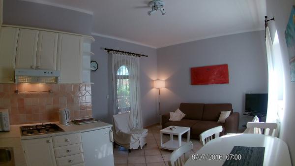 Smo ostali teden v avgustu v tem stanovanju. Hiša res zelo lepo in mirno. Vse dobrine, ki so na voljo (Veranda, WiFi, SAT TV, parkirišče, itd ..). Sobe zelo čiste in prostorne. Tam je bilo vse, kar potrebujete za kuhanje (razen kave, ki na srečo smo prinesel od doma), posteljnino in brisače za kopalnico. Območje priročno za vse, če je opremljen avto. Gostitelji zelo prijazni in ustrežljivi, nekaj res lepih ljudi. Vrednost za denar vsekakor priporočljivo.