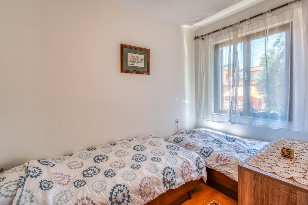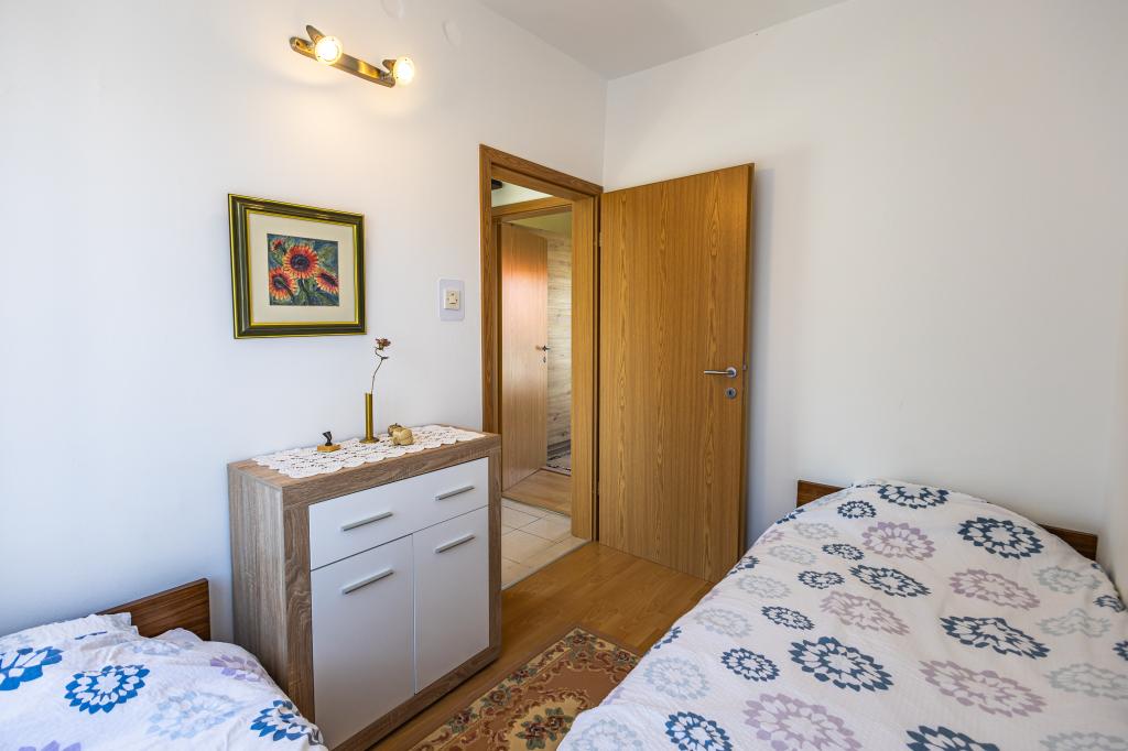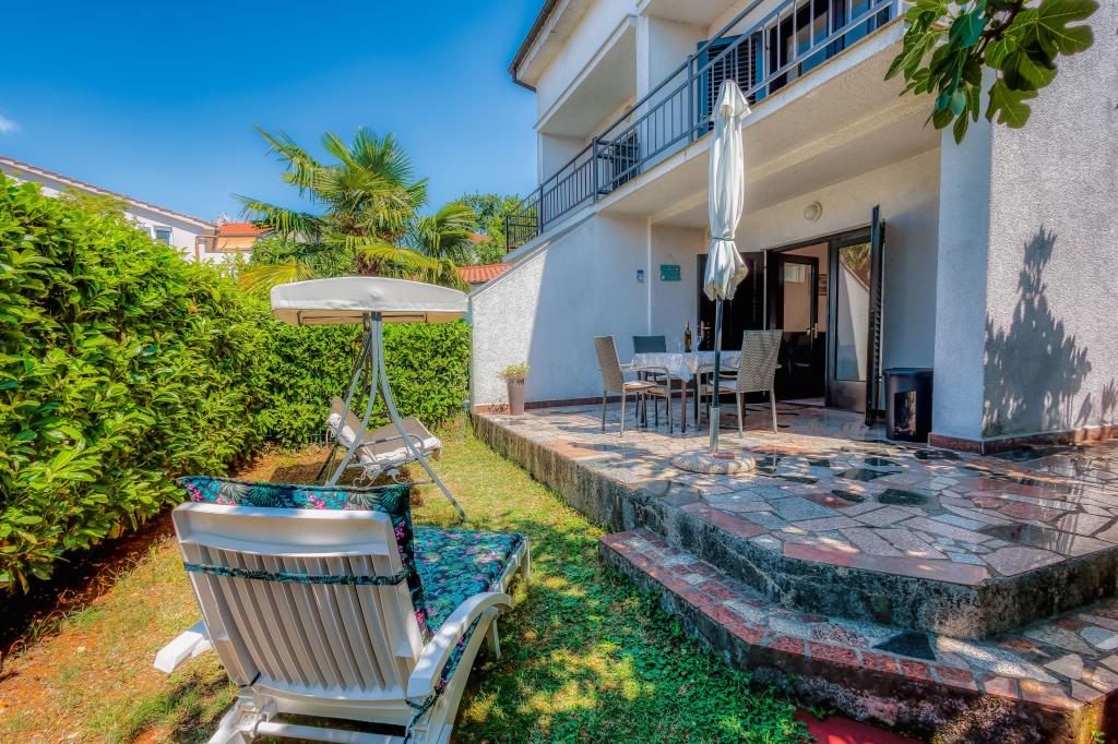 Popolnoma opremljen štiri-sobno duplex stanovanje z lastnim parkiriščem in vrtom. Sestavljen je iz terase, balkon, kuhinja, dnevna soba, WC / kopalnica in dve spalnici. Apartma se nahaja na koncu ulice, ki ni zaseden. Oddaljenost od plaže in restavracije, pet minut hoje od centra mesta 20 minut hoje po sprehajalni poti ob morju.
