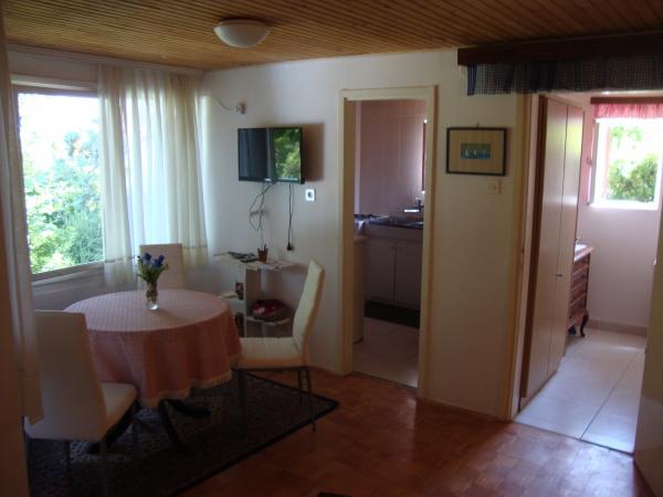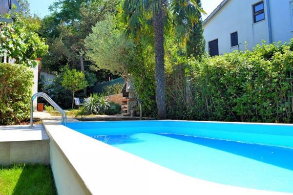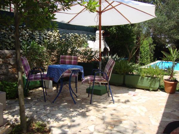 Popolnoma opremljeni in moderno počitniška hiša z velikim in lepo urejenem parku 700 kvadratnih metrov, v mirnem delu mesta. Hiša je v dobrem položaju, tako da je 100 metrov zračne črte od morja in le 5min hoje do centra mesta. V neposredni bližini je trgovina, restavracija in hotel s športnimi objekti. Apartma je sestavljen iz spalnice z dvema posteljama, dnevna soba z dvemi dodatnimi ležišči in zunanjo jedilnico, kopalnico in kuhinjo. Dnevna soba je velika pokrita terasa. Hiša ima dve veliki parkirni mesti, zunanji tuš, bazen 6x3m in žar.