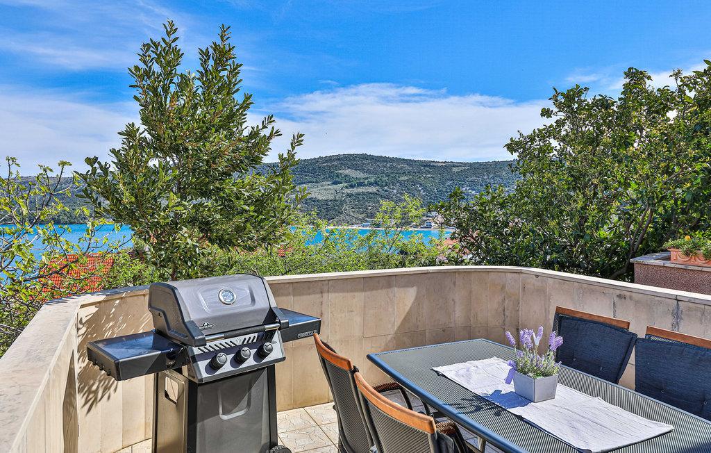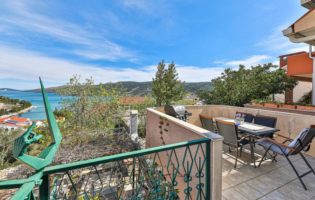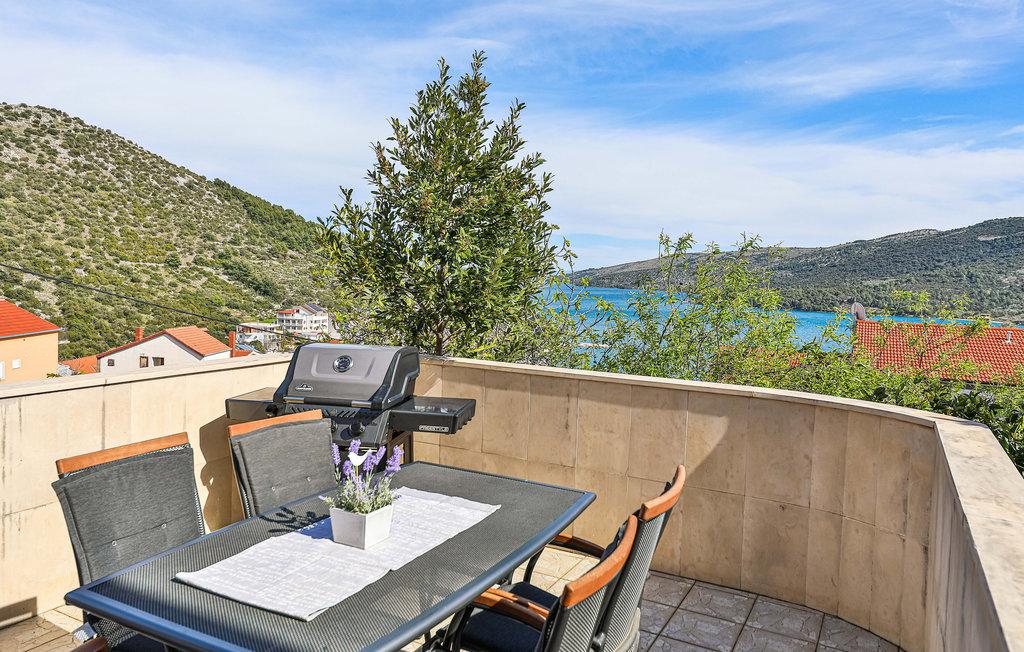 Uživajte v popolnoma opremljenih apartmajih s pogledom na morje, 200 metrov nad prodnato plažo na idealni lokaciji za raziskovanje lepot Dalmacije, med Splitom in Šibenikom.
