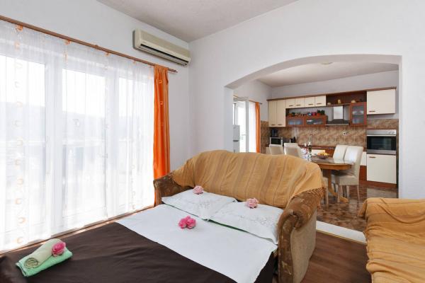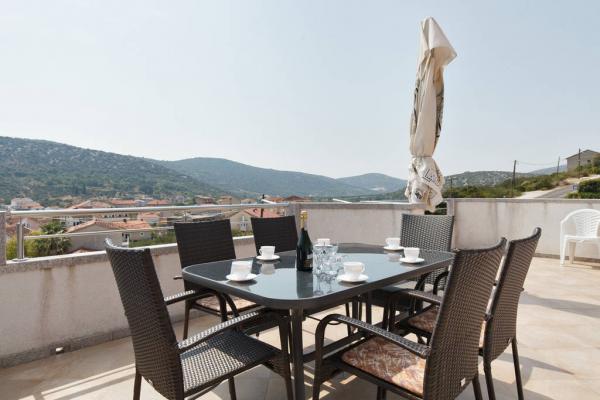 Popolnoma opremljeni in moderni apartmaji v mirnem delu mesteca Marina v bližini Trogirja vam zagotavljajo vse, kar potrebujete za vaš dopust. Zemljišče se nahaja 7 minut hoje od plaže, 150m od centra mesta in 40m od trgovine. Trogir imate samo 10 km in Splita in Šibenika 30 km.