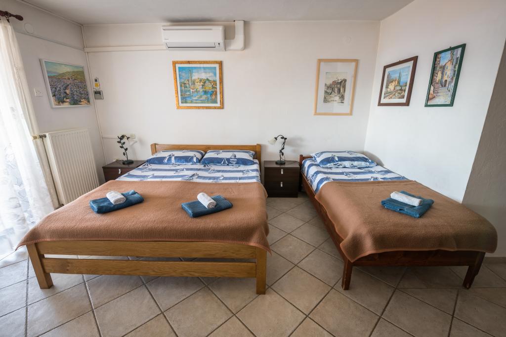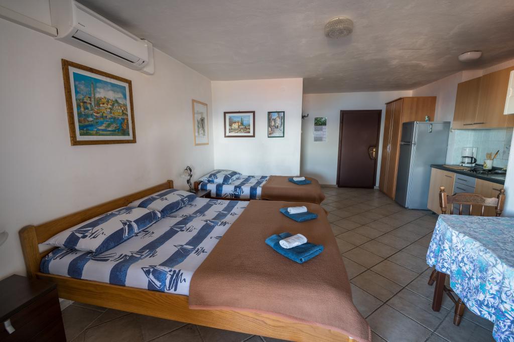 Turistična taksa je vključena v ceno.Našim gostom Vile Goga nudimo brezplačno ograjeno parkirišče pred vilo, brezplačno uporabo Goga Club Grill, kjer lahko gostje uporabljajo plinski ali drvni žar in si izberejo eno izmed pekarn, kjer lahko spečejo meso ali domač kruh po starih receptih. Goga Club Grill je pokrit in zaprt, tako da gostom nudi možnost druženja tudi v deževnem vremenu. Vsak apartma vile ima popolnoma opremljeno kuhinjo, opremljena ležišča s posteljnino in brisačami, kopalnico s tuš kabino, umivalnikom in straniščem Vsak apartma ima lastno teraso s pogledom na morje ali oljčne nasade, odvisno od lokacije. apartma Prav tako so vsi apartmaji vile pokriti z brezžičnim internetom, ki je za goste popolnoma brezplačen. NOVO!! Vsem gostom hiše je na voljo novozgrajena polnilna postaja za električne avtomobile, ki se nahaja na dvorišču hiše. Polnilna postaja ima priključek tipa 2 s hitrostjo polnjenja 11 KW. Uporaba se dodatno zaračuna.