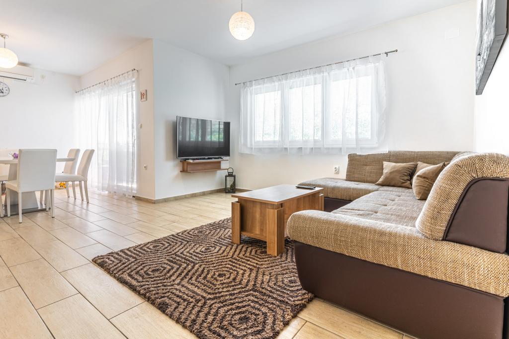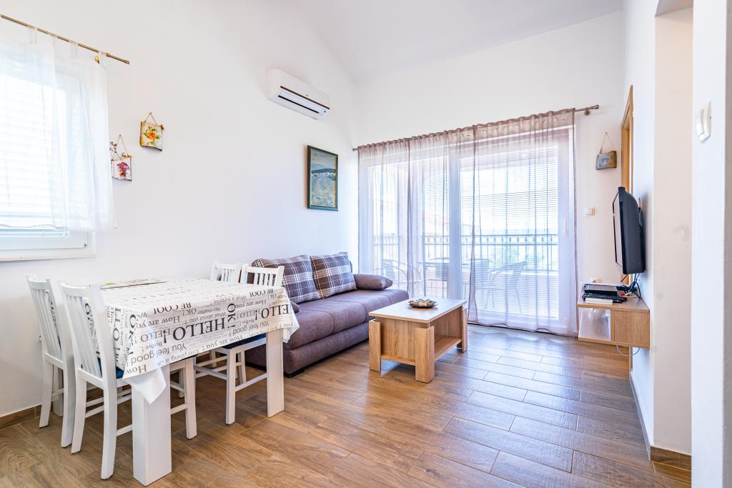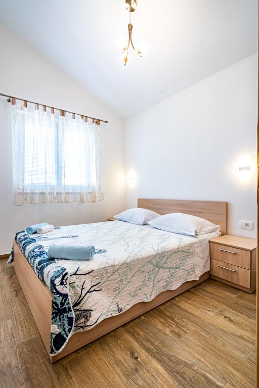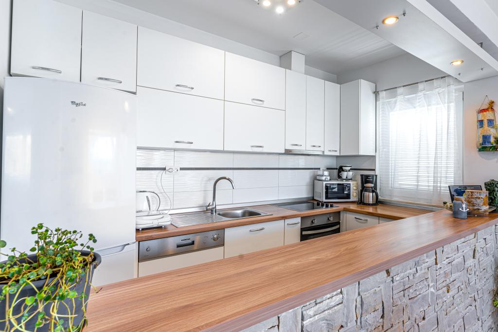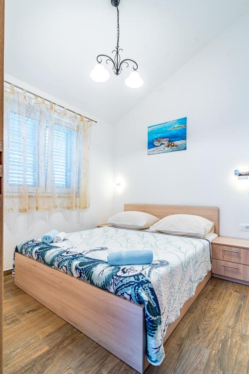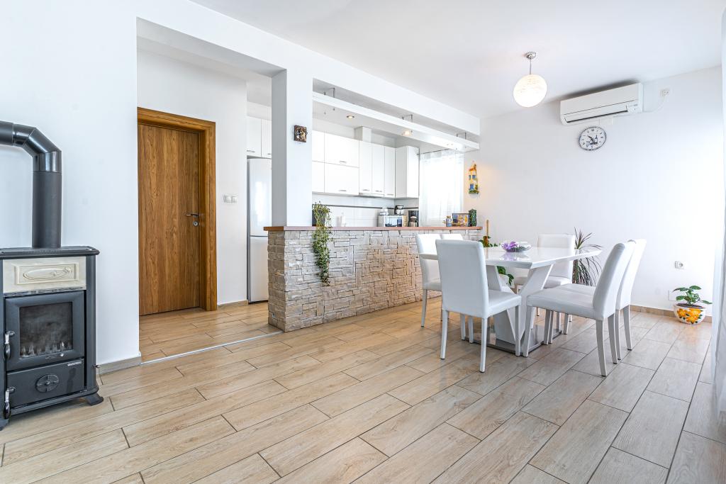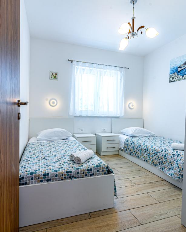 Dobrodošli v naši čudoviti hiši za najem, ki se nahaja v mirni in prijazni soseski. Ta oaza udobja vam nudi vse, kar potrebujete za sproščujoče in nepozabne počitnice. Naša hiša se nahaja le 5 minut hoje od morja, kar vam omogoča enostaven dostop do čudovitih plaž in kristalno čistega Jadranskega morja. Vsak apartma ima teraso s pogledom na morje, ki ustvarja popolno okolje za jutranjo kavo ali romantično večerjo ob sončnem zahodu. Naši apartmaji so moderno in sodobno opremljeni ter vam zagotavljajo udobje in luksuz med bivanjem. Uživajte v prostornih sobah, popolnoma opremljeni kuhinji in elegantni notranjosti, ki vas bo osvojila. Ne glede na to, ali ste par, ki išče romantičen oddih, ali družina, ki išče sproščujoče počitnice, je naša hiša idealen kraj za vas. Čakamo na vaš prihod in se veselimo, da vam lahko zagotovimo neverjetno počitniško izkušnjo, ki se je boste še dolgo spominjali.
