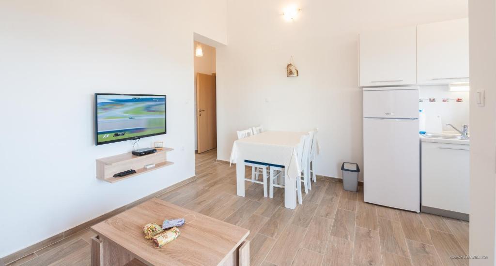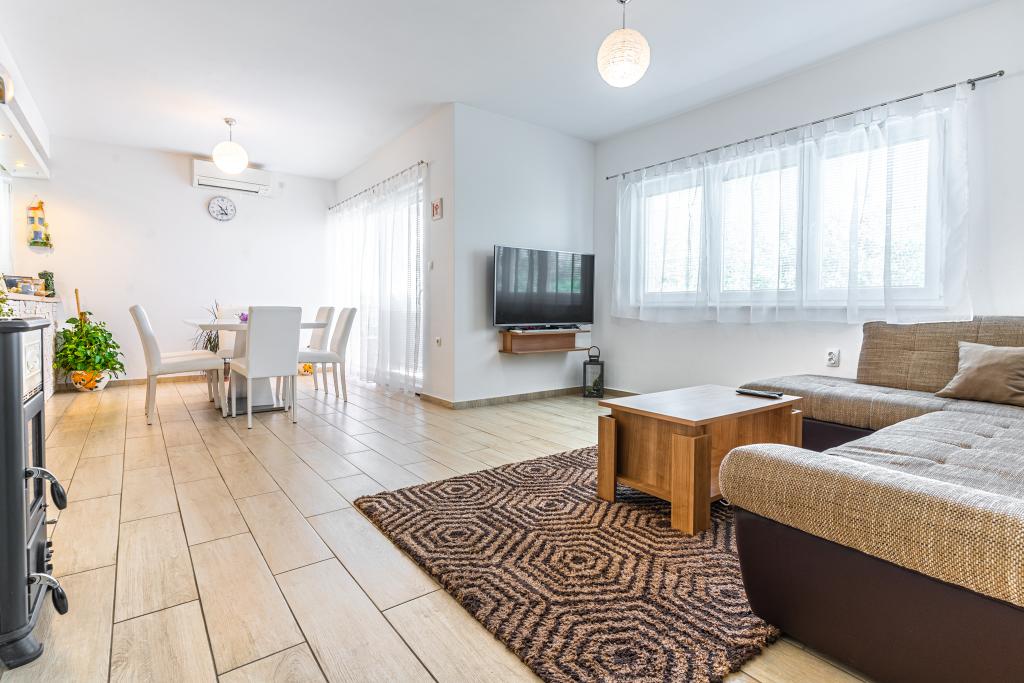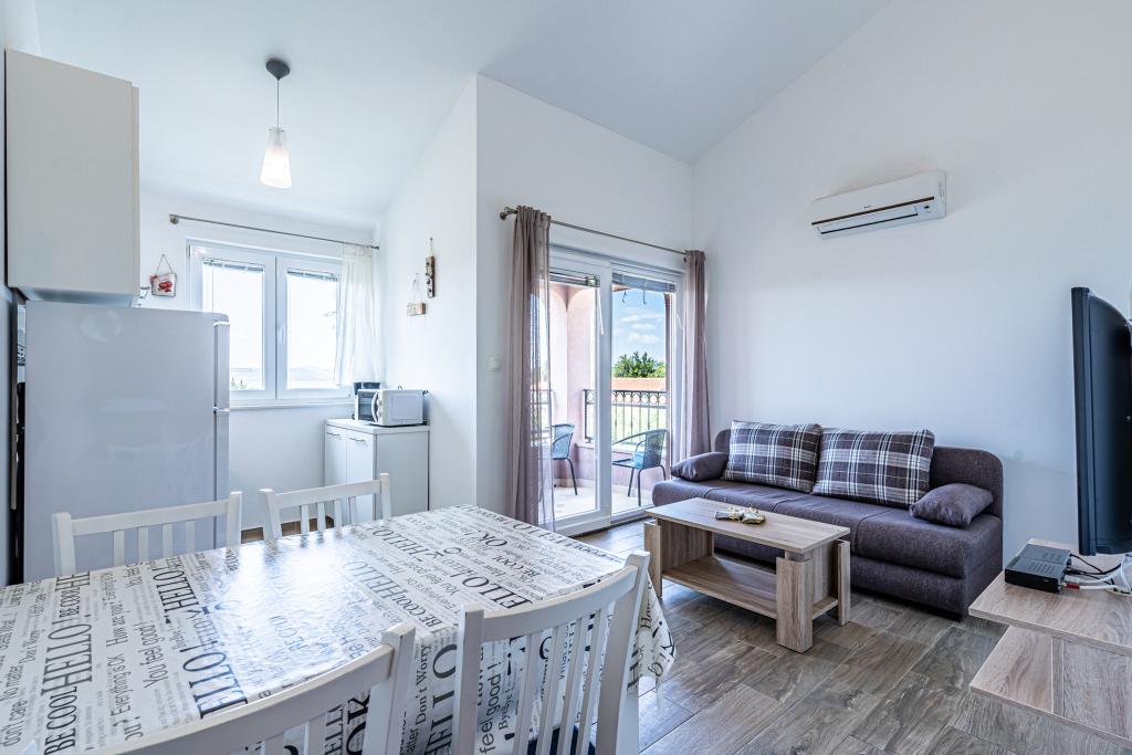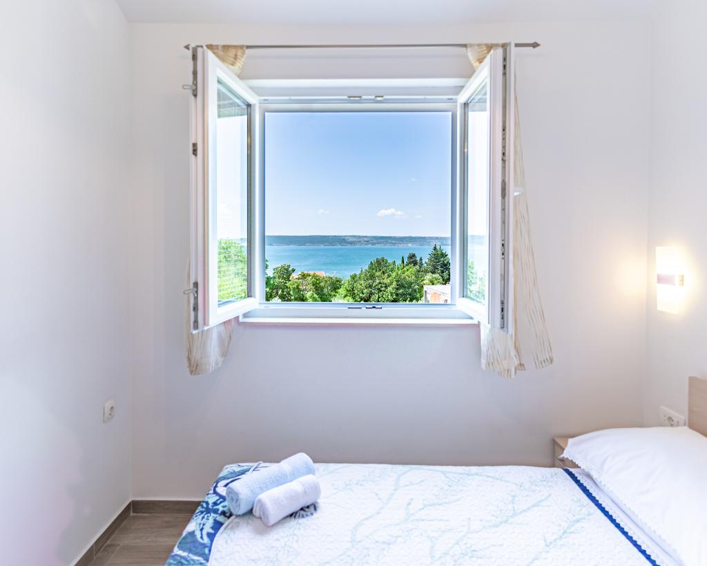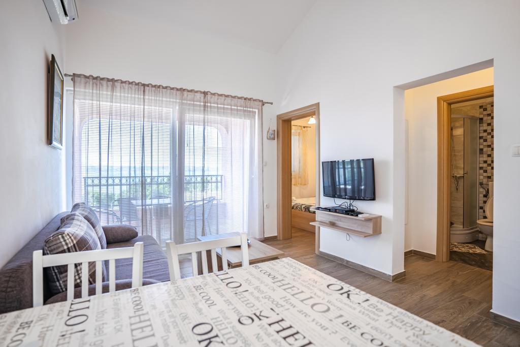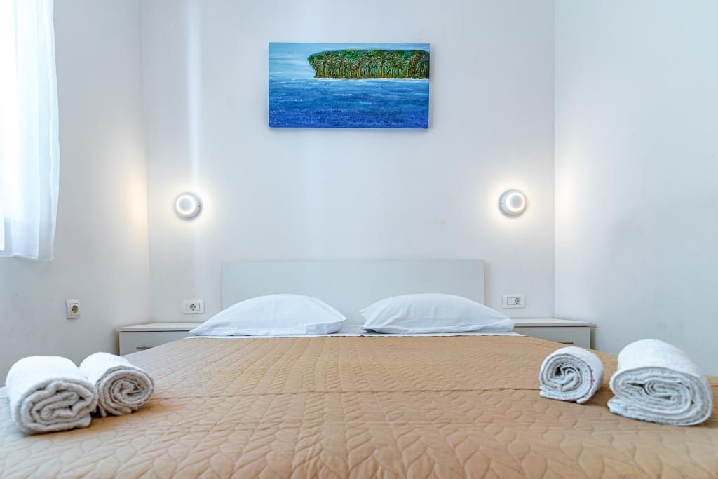 Dobrodošli v naši čudoviti hiši za najem, ki se nahaja v mirni in prijazni soseski. Ta oaza udobja vam nudi vse, kar potrebujete za sproščujoče in nepozabne počitnice. Naša hiša se nahaja le 5 minut hoje od morja, kar vam omogoča enostaven dostop do čudovitih plaž in kristalno čistega Jadranskega morja. Vsak apartma ima teraso s pogledom na morje, ki ustvarja popolno okolje za jutranjo kavo ali romantično večerjo ob sončnem zahodu. Naši apartmaji so moderno in sodobno opremljeni ter vam zagotavljajo udobje in luksuz med bivanjem. Uživajte v prostornih sobah, popolnoma opremljeni kuhinji in elegantni notranjosti, ki vas bo osvojila. Ne glede na to, ali ste par, ki išče romantičen oddih, ali družina, ki išče sproščujoče počitnice, je naša hiša idealen kraj za vas. Čakamo na vaš prihod in se veselimo, da vam lahko zagotovimo neverjetno počitniško izkušnjo, ki se je boste še dolgo spominjali.