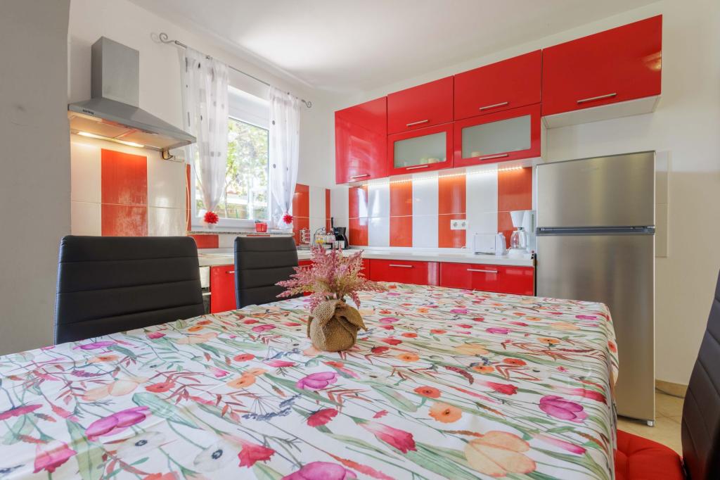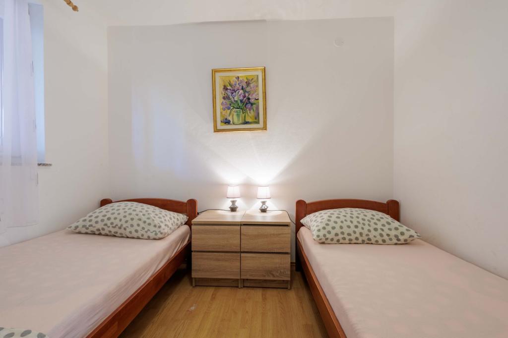Apartmaji Marin v mirnem delu Medulina, v naselju Pošesi, vam ponujajo popolnoma opremljen apartma: v pritličju dvosobni apartma s 4 ležišči, le petdeset korakov od plaže s pogledom na morje, parkirišče. in jacuzzi v pritličju. Jacuzzi za doplačilo 15 €/dan Oddaljenost od znane peščene plaže Bjeca 800 m.