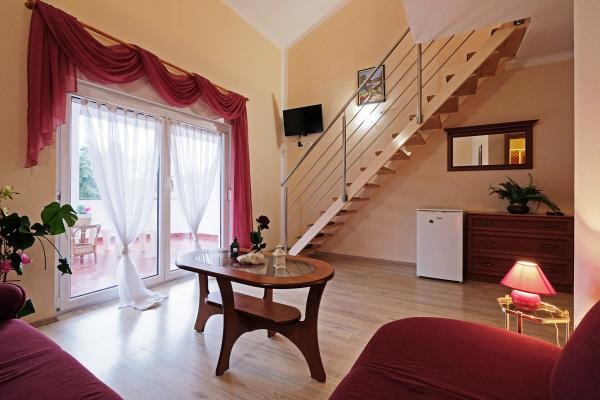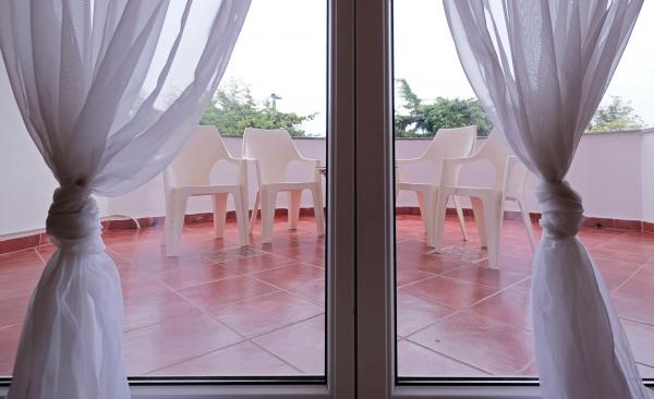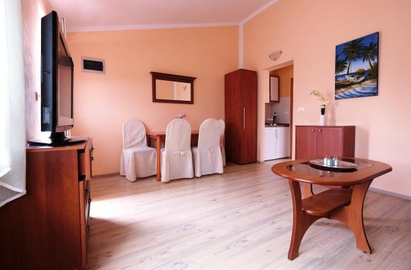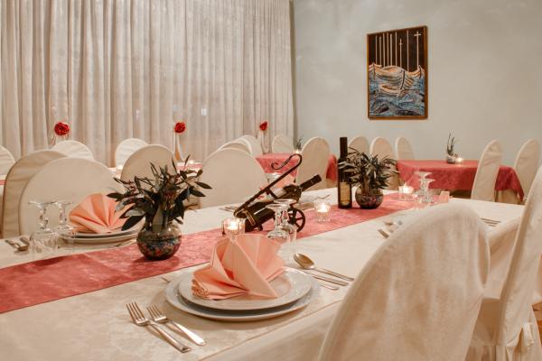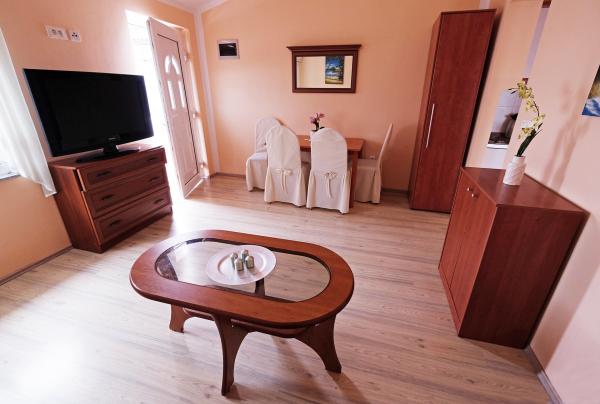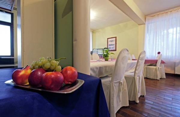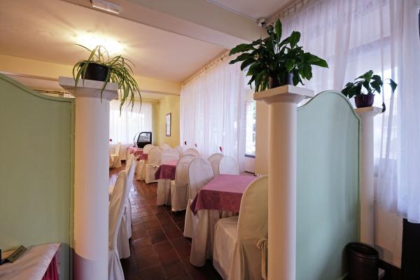 V stavbi je restavracija z veliko teraso, tako da lahko imajo na vaše zajtrkom in večerjo.