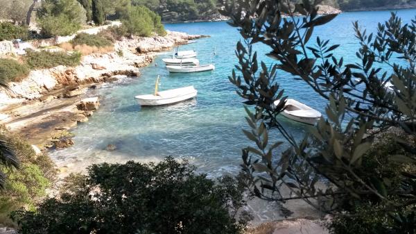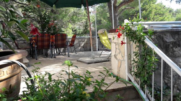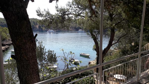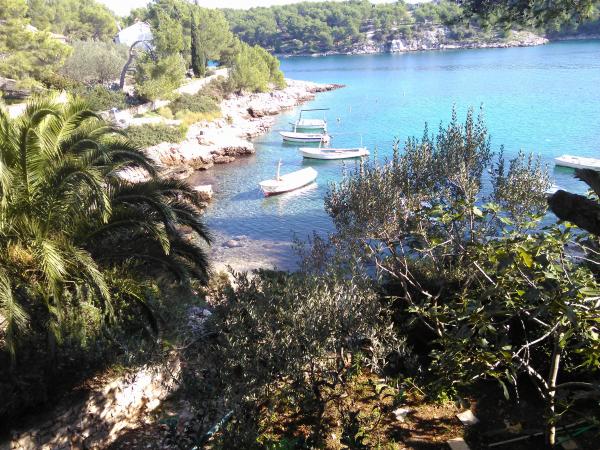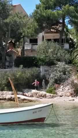 Hiša se nahaja v mirnem zalivu Osibova, le 2 km od majhne ribiške vasice Milna. Plaža je le nekaj korakov od apartmaja. Obstajata dve spalnici z zakonsko posteljo in ena soba s kotiček kavč posteljo. Ob vstopu v stanovanje je velika zelena terasa s pogledom na kristalno modro morje. Apartma je opremljen s klimatsko napravo, s TV, mikrovalovna pečica, pomivalni stroj, lahko uporabite pralni stroj. Gostje imajo uporabo dveh koles, žarom, je možno, da gredo ribolov z lastnikom in čolnarjenje.
