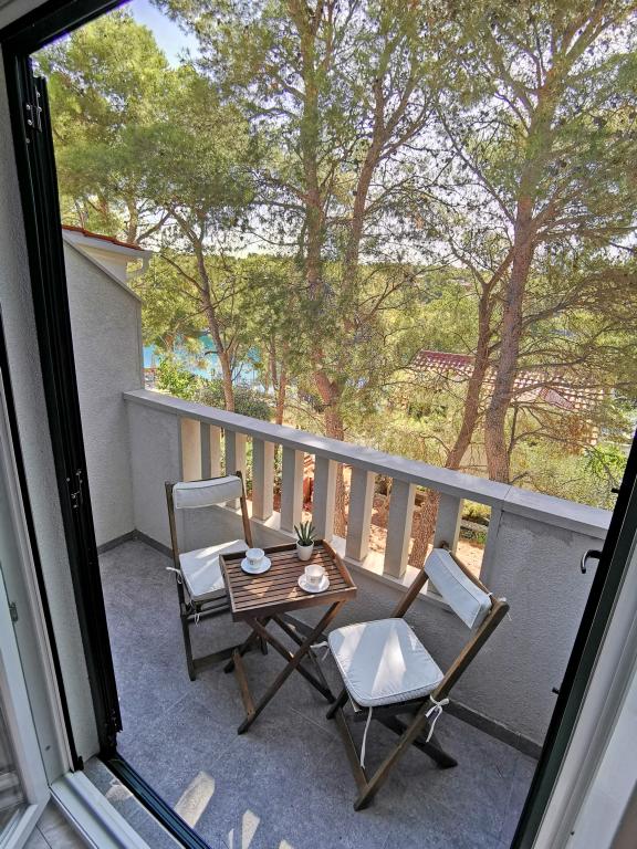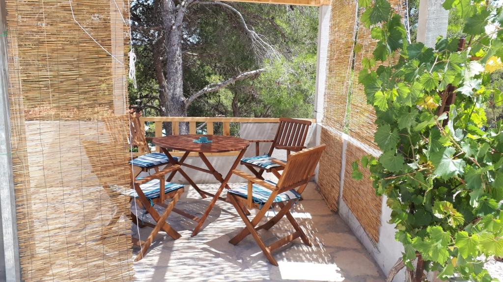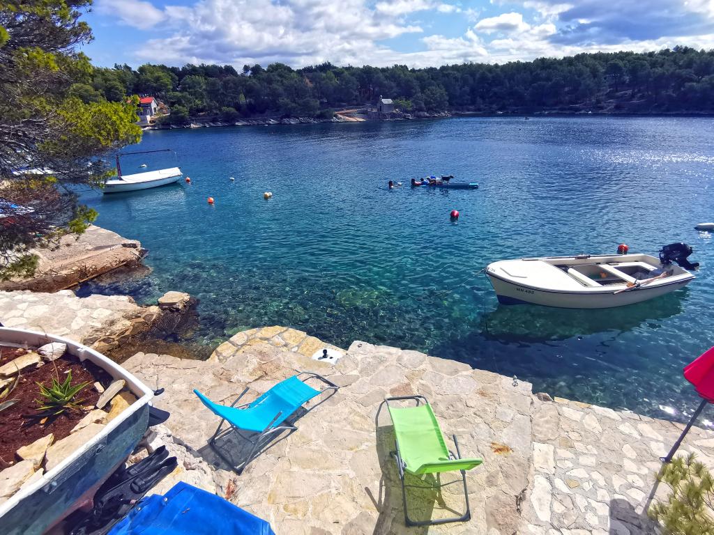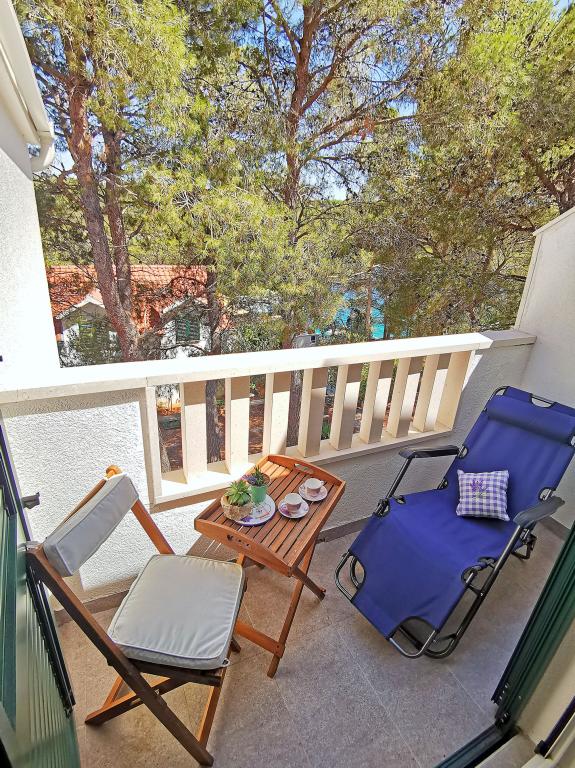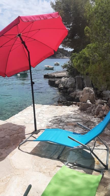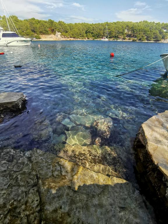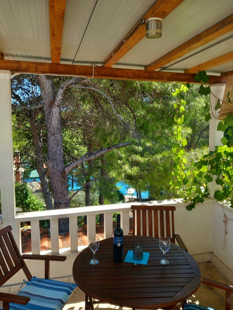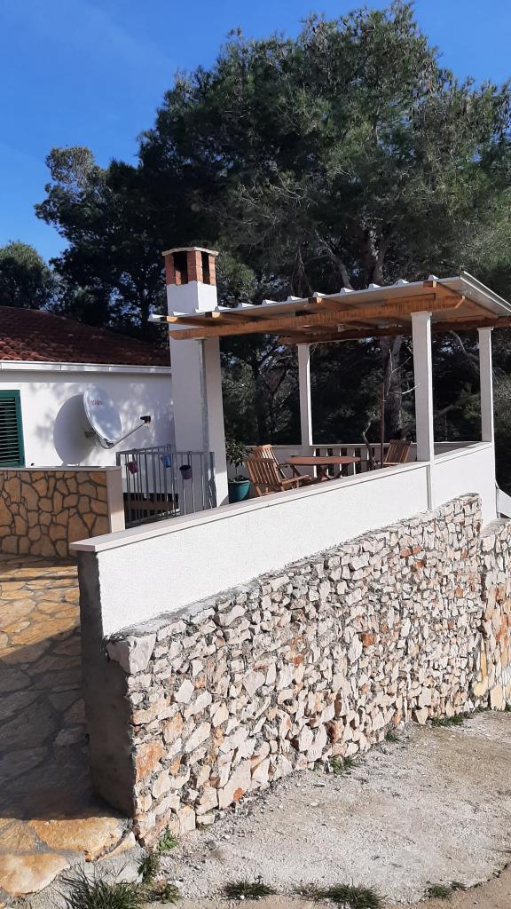 Dva apartmaja moderno opremljeni in klimatizirani, ki se nahaja v lepem borovem gozdovi, zalivi smiještenena na jugozahodu otoka, na 30 m od morja, ki je prav tako in plaža. Apartmaji so sestavljeni iz kuhinje, dnevna soba, spalnica in kopalnica. Vsak apartma ima lastno teraso in parkirni prostor. Najbližje mesto Milna, ki se nahaja na 1500m razdalji, torej 15 min hoje.