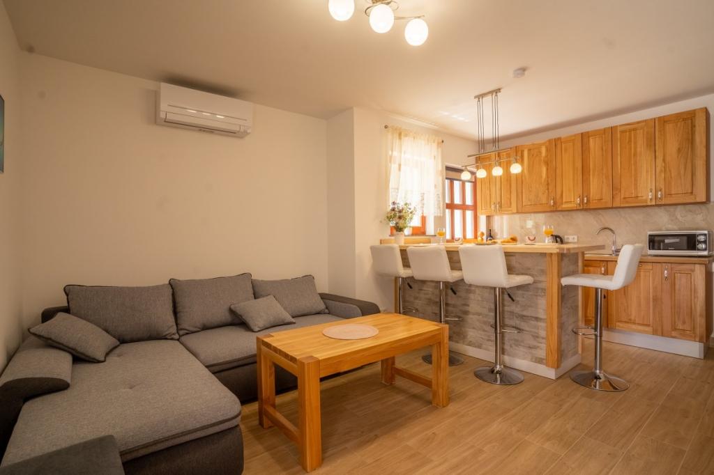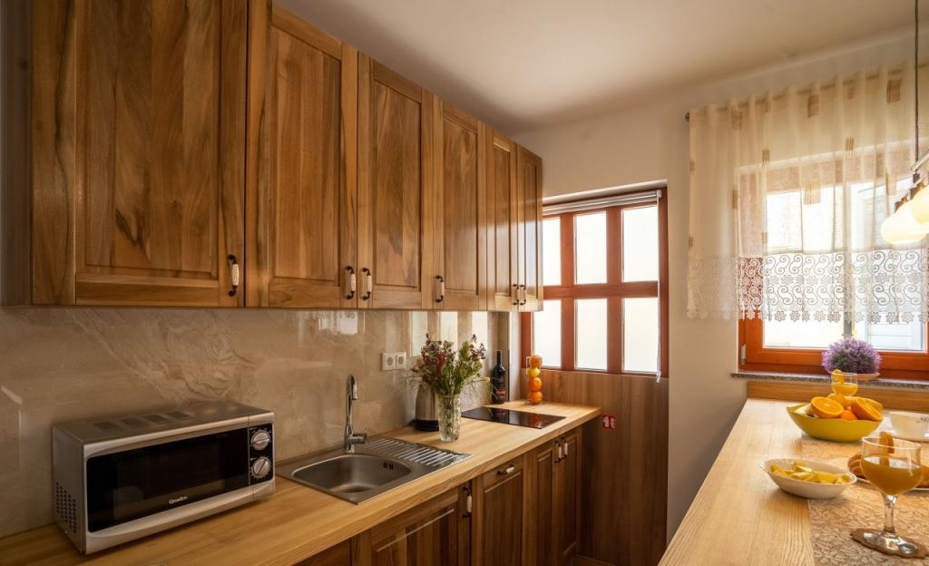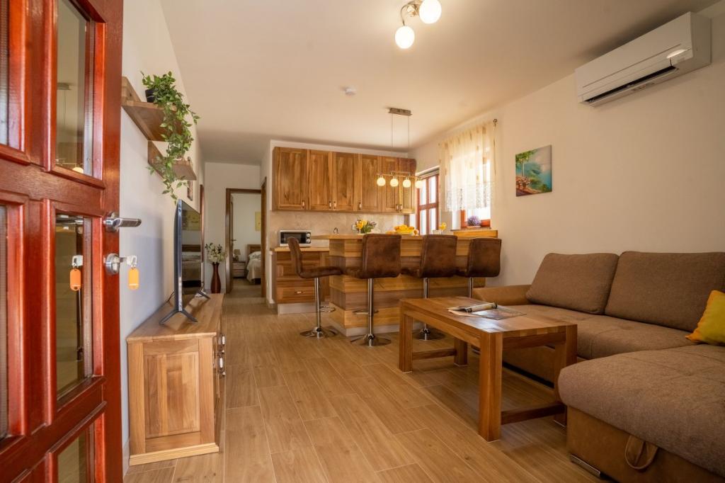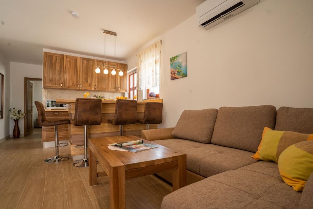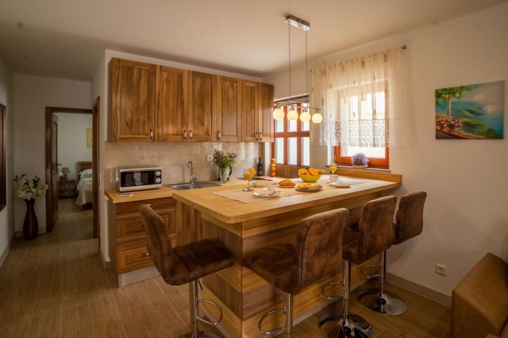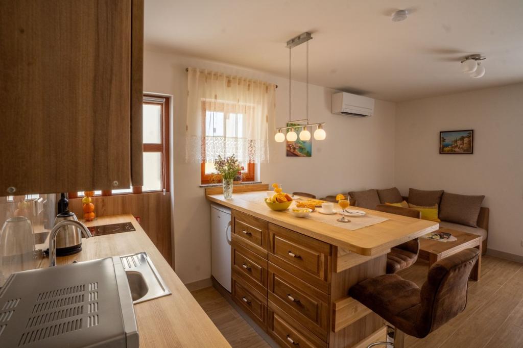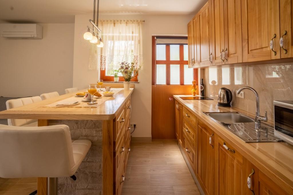 Villa Kalinić je sestavljena iz dveh apartmajev. Eden se imenuje Češnja, ker je 80% pohištva izdelanega iz češnjevega lesa, drugi pa se imenuje Orehov apartma, ker je narejen iz orehovega lesa.Vsak kos pohištva je pristen in ročno izdelan s strani gostitelja, ki je zelo dober in izkušen mizar.Oba apartmaja imata eno spalnico z veliko zakonsko posteljo in veliko garderobno omaro, kamor lahko spravite vso garderobo. Ima tudi kopalnico, ki ima veliko tuš kabino in pralni stroj. Oba apartmaja imata dokaj veliko kuhinja, ki ima vso potrebno opremo za kuhanje, ki je nova dnevna soba je sestavljena iz udobnega kavča za gledanje televizije, ki služi tudi kot dodatno ležišče zunaj apartmaja je zelo prostorno za jesti ali uživati pijačo na lesenih ležalnikih.