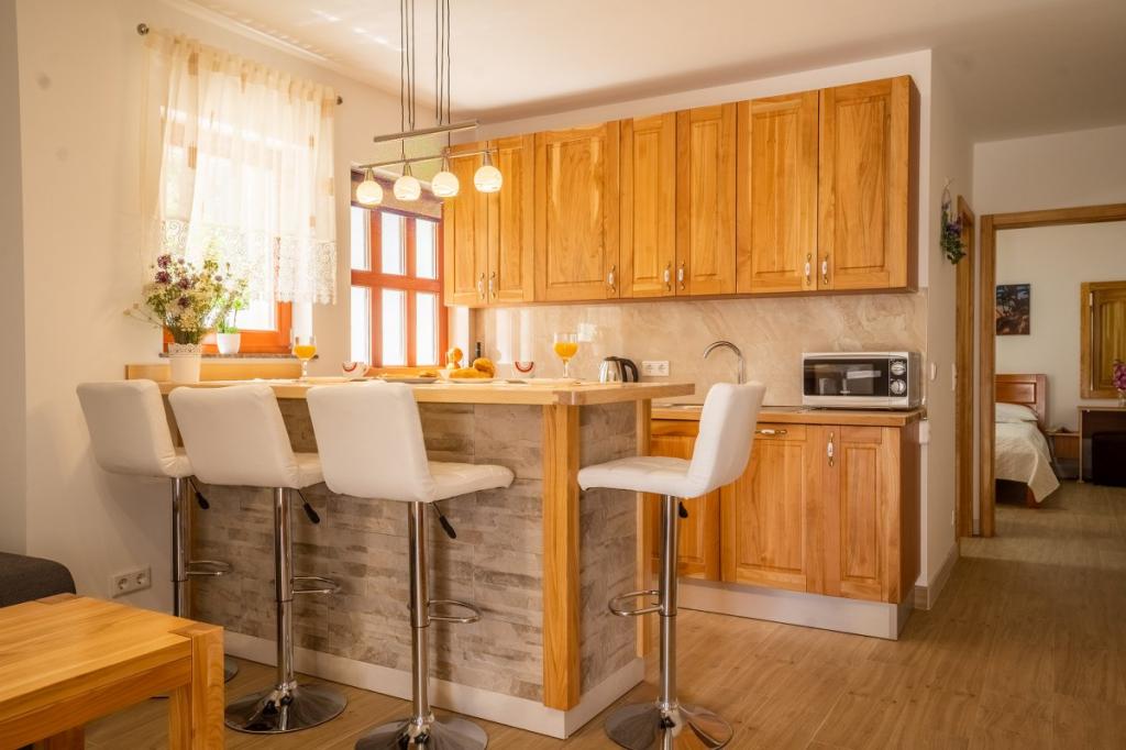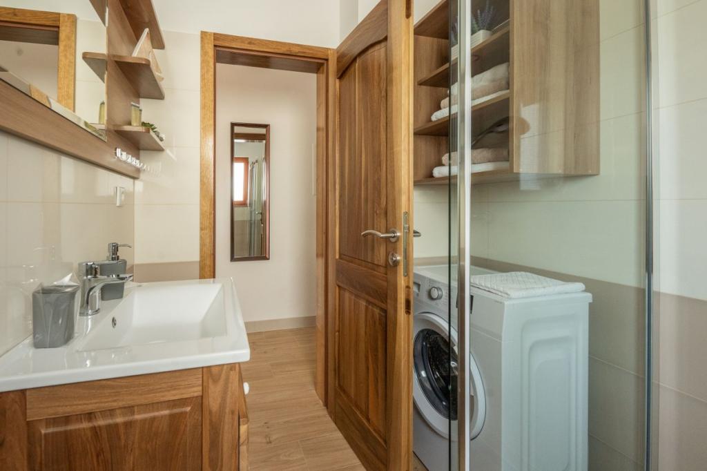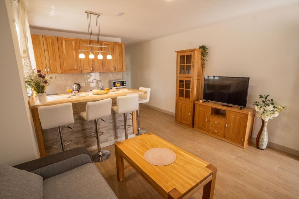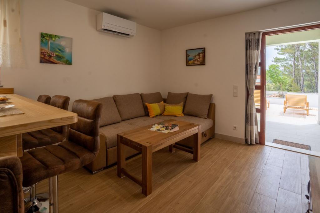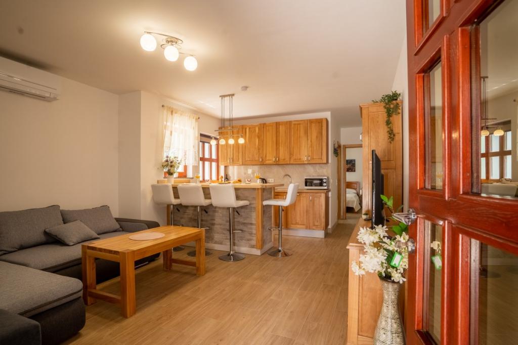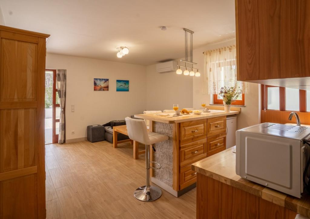 Villa Kalinić je sestavljena iz dveh apartmajev. Eden se imenuje Češnja, ker je 80% pohištva izdelanega iz češnjevega lesa, drugi pa se imenuje Orehov apartma, ker je narejen iz orehovega lesa.Vsak kos pohištva je pristen in ročno izdelan s strani gostitelja, ki je zelo dober in izkušen mizar.Oba apartmaja imata eno spalnico z veliko zakonsko posteljo in veliko garderobno omaro, kamor lahko spravite vso garderobo. Ima tudi kopalnico, ki ima veliko tuš kabino in pralni stroj. Oba apartmaja imata dokaj veliko kuhinja, ki ima vso potrebno opremo za kuhanje, ki je nova dnevna soba je sestavljena iz udobnega kavča za gledanje televizije, ki služi tudi kot dodatno ležišče zunaj apartmaja je zelo prostorno za jesti ali uživati pijačo na lesenih ležalnikih.