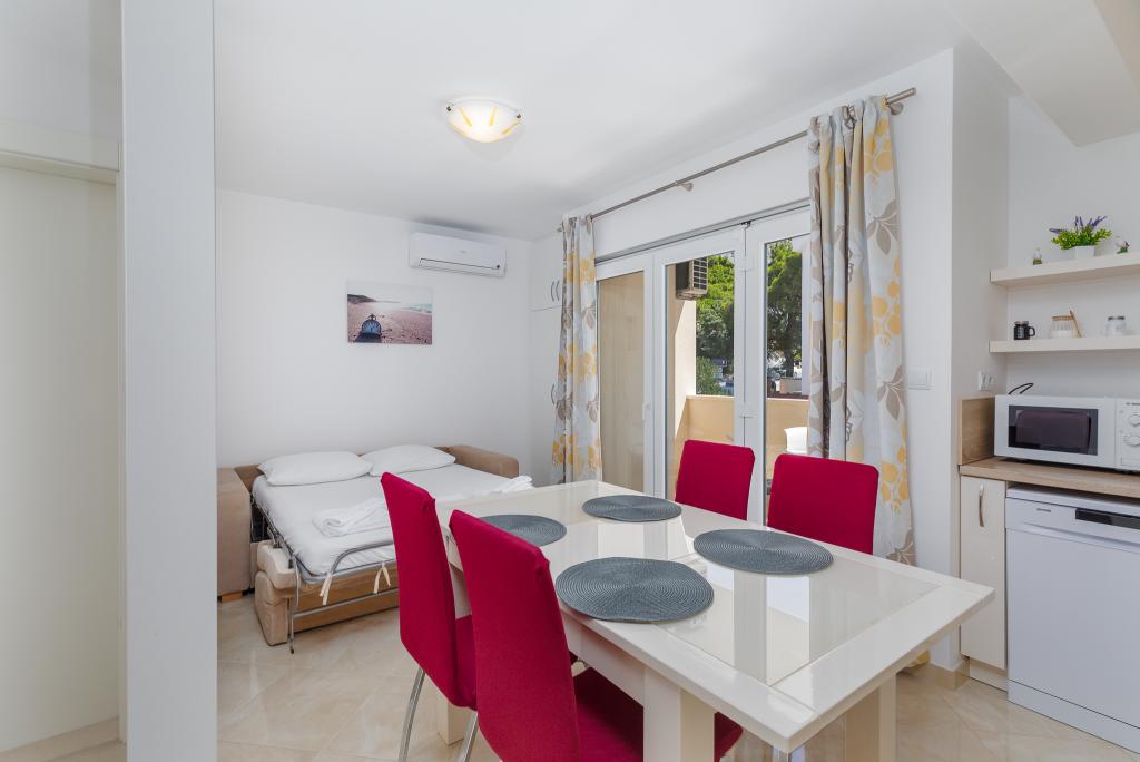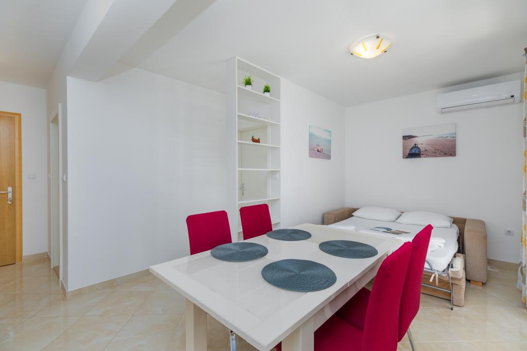 Dobrodošli v Apartmajih Bosiljka v Medića – majhni dalmatinski oazi miru med Omišem in Makarsko. Le 50 metrov od prodnatih plaž in kristalno čistega morja vas bodo pozdravili gostitelji, ki sprejemajo goste kot svoje. Zaseben dostop do morja in brezplačno parkirišče ob hiši poskrbita za brezskrbne počitnice od prve minute. Na terasah in balkonih se širi vonj po morju in borovcih, pogled pa se izgublja v modrini. Dovolj je, da prinesete dobro knjigo… in nasmeh. Lokacija je popolno izhodišče za izlete: Omiš (15–20 min), Split in Trogir za kulturo in sprehode po ozkih ulicah, Makarska za živahen sprehod ob obali, reka Cetina za rafting in Biokovo Skywalk za razglede, ki jemljejo dih. V bližini so trgovina, pošta, stojnice s sadjem, restavracije in kavarne – vse »na doseg sandal«. Če iščete mir, čisto morje in pristno gostoljubnost, ste na pravem mestu. Rezervirajte svoj termin in pridite po odmerek dalmatinskega pomalo – za ostalo bomo poskrbeli mi.