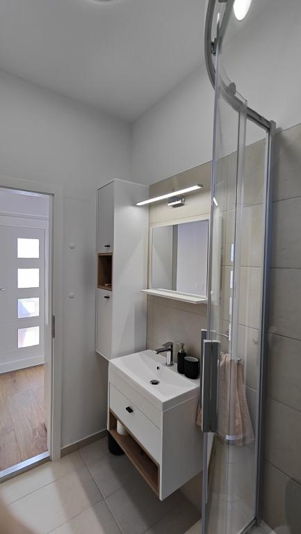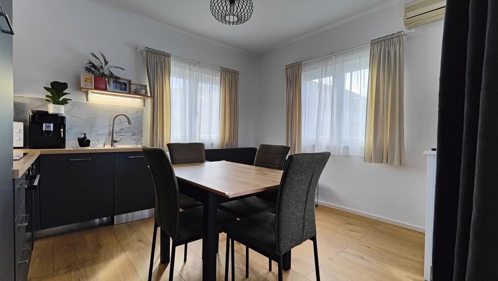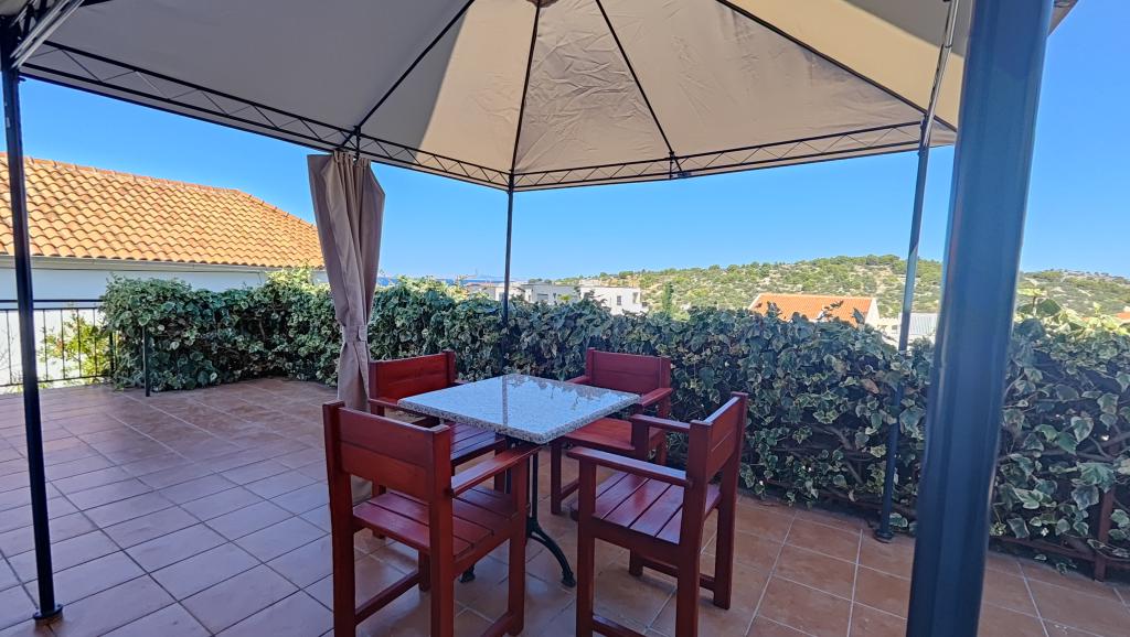 Popolnoma prenovljeno stanovanje v zasebnem okolju, z veliko teraso in pogledom na morje, 300 m od peščene plaže Slanica. Gostom je na voljo žar in prostor za druženje na dvorišču, ter zavarovano parkirno mesto. Stanovanje ima veliko ločeno spalnico. Kuhinja je popolnoma opremljena, z aparatom za kavo, pomivalnim strojem, velikim hladilnikom in zamrzovalnikom, na voljo pa je tudi pralni stroj.