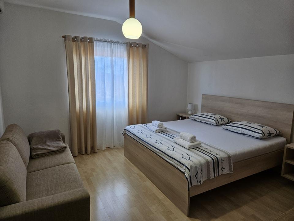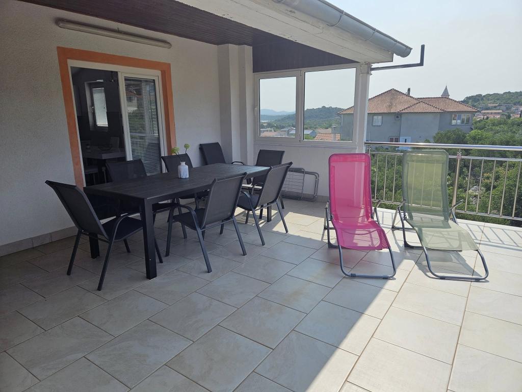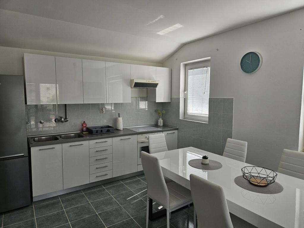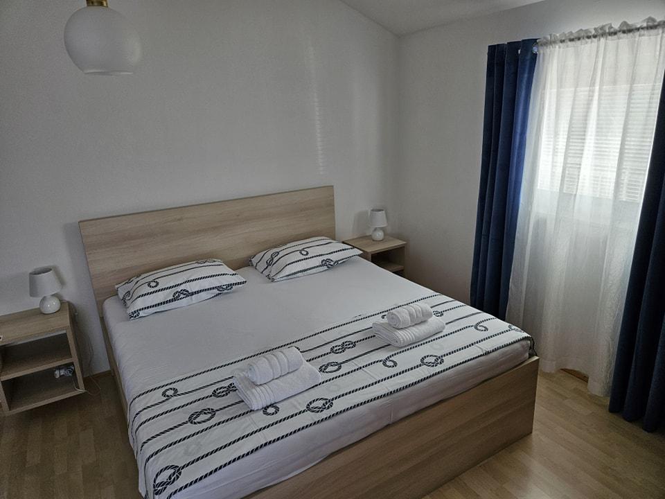 Moderno opremljen apartma se nahaja 600 metrov od peščene plaže Slanica, ene najlepših plaž v okolici. Apartma ima 100 m2, 3 spalnice, 2 kopalnici, kuhinjo z jedilno mizo, veliko teraso, klimatsko napravo v vsaki sobi, wi-fi, TV, satelitsko televizijo, pomivalni stroj, žar, varovano parkirišče za 2 avtomobila, vrt in paviljon za sprostitev. Cena vključuje posteljnino, brisače, končno čiščenje in turistično takso.