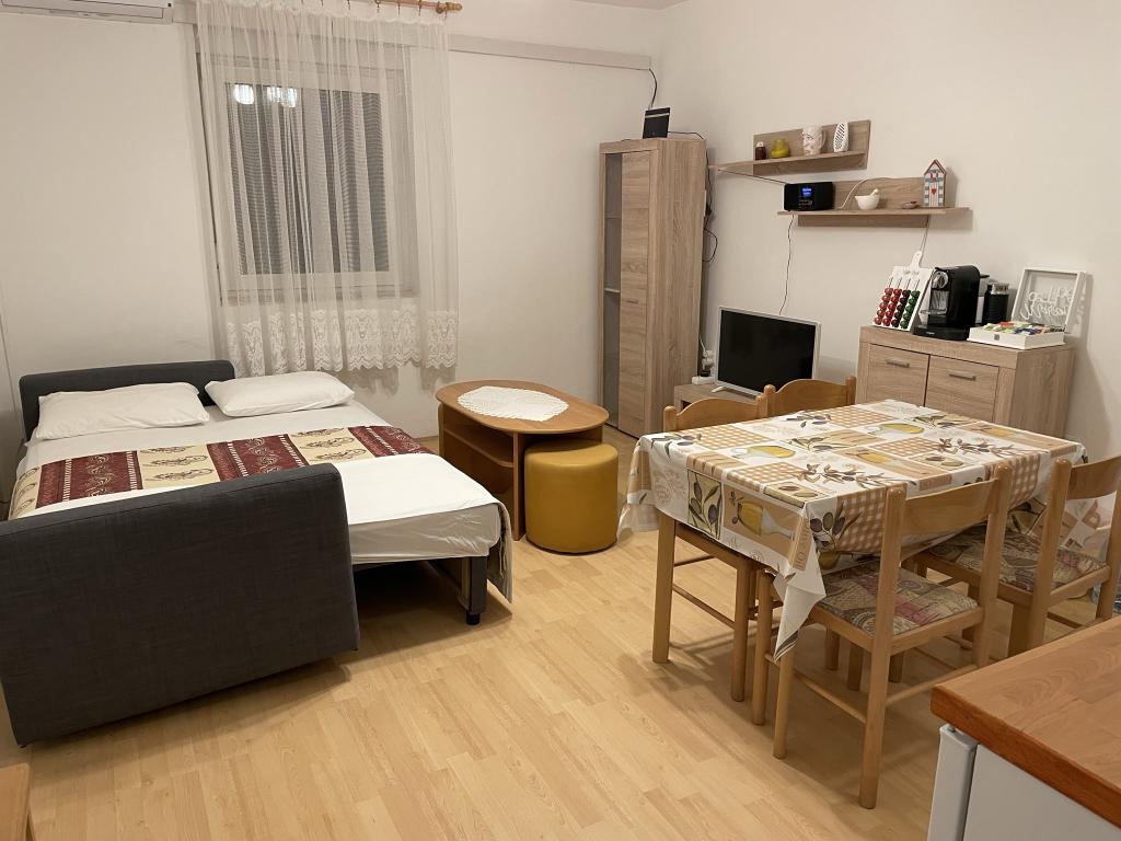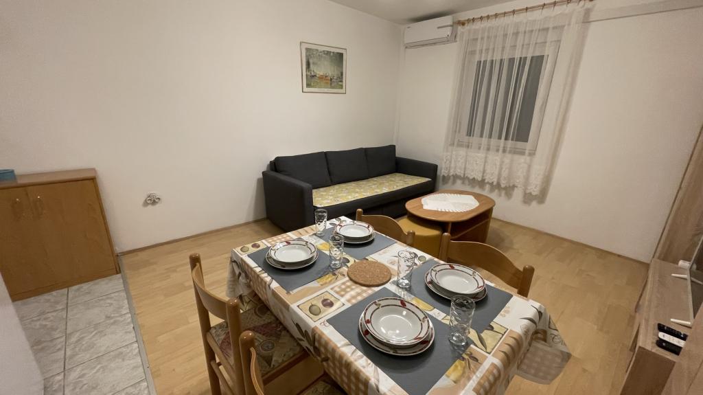 Dober dan, pričeli smo s sprejemanjem rezervacij za leto 2024! Naše cene za leto 2024 se niso spremenile in koledar je vedno posodobljen pravočasno. Apartma se nahaja v Murterju v Šibensko-kninski županiji. Nahaja se neposredno na eni izmed najlepših plaž na Murterju, Slanica, in nudi vse za vaš tako dolgo potreben dopust. Apartma ima tudi teraso s pogledom na plažo in morje. Stanovanju pripada parkirno mesto, ki je vključeno v ceno stanovanja. Apartma ima 1 spalnico, dnevno sobo z raztegljivo posteljo in popolnoma opremljeno kuhinjo, zaradi česar je idealen kraj za družinske počitnice. Apartma ima tudi TV z ravnim zaslonom, WiFi, DAB+ radio, štedilnik in pralni stroj v nedavno prenovljeni kopalnici. V neposredni bližini apartmaja se nahajajo kavarne, restavracije, teniško igrišče in otroški vodni park. Vsi gostinski objekti so odprti do 22. ure zvečer, nato pa se zabava preseli v središče Murterja, ki je oddaljeno približno 15 minut lahke hoje.