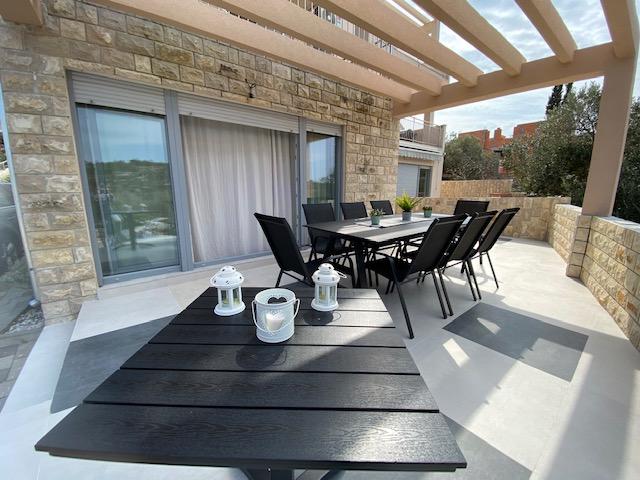 Popolnoma in moderno urejen apartma 100m od peščene plaže, vse aktivnosti v bližini. Stavba je na novo zgrajena, ima lasten vhod, 2-3 parkirna mesta in dvorišče.