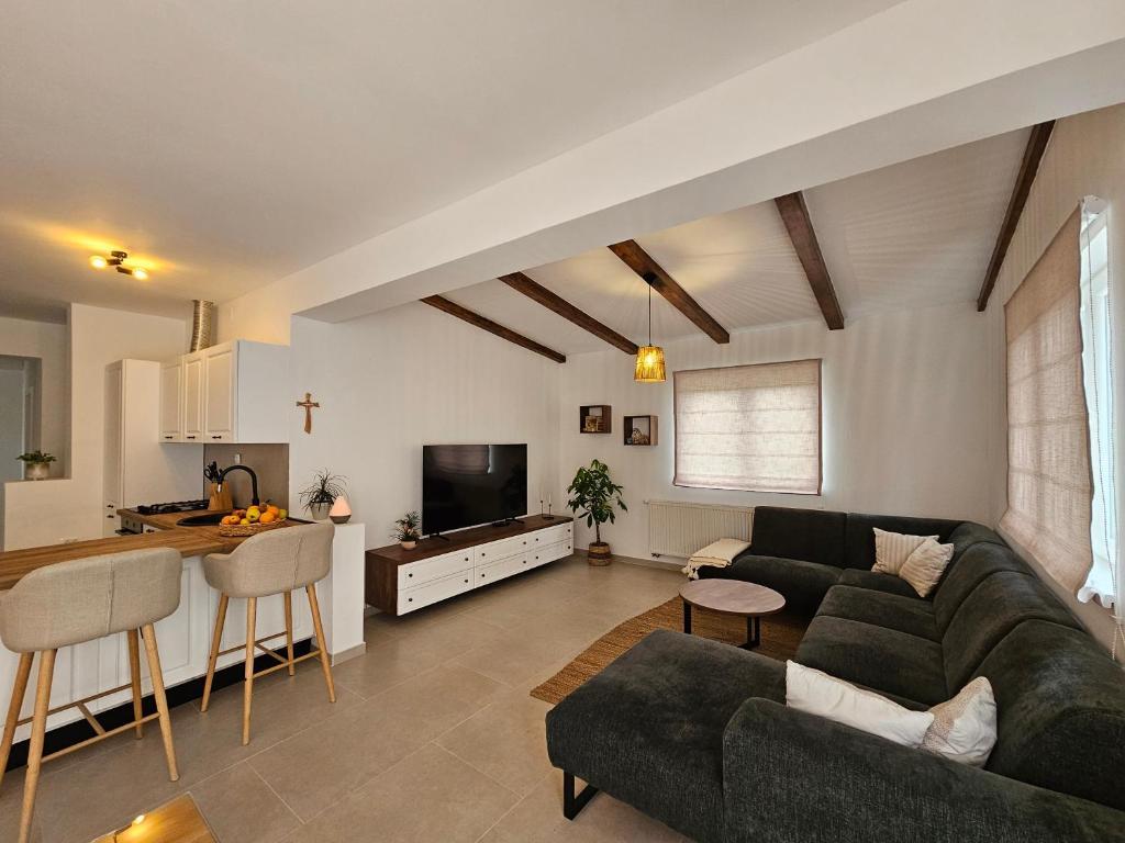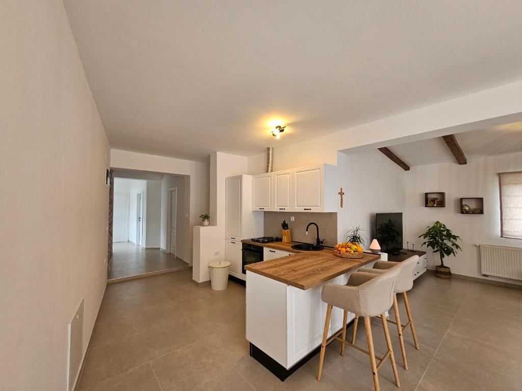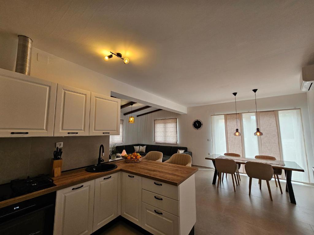 Apartma Una se nahaja v Murterju, na odlični lokaciji, le nekaj minut hoje od centra. Nahaja se v mirni ulici, idealni za sproščujoče počitnice, hkrati pa je blizu restavracij, trgovin in vseh pomembnih ugodnosti. Ta prostoren apartma ponuja popolnoma opremljeno kuhinjo z jedilnico, dnevno sobo, dve udobni spalnici in moderno kopalnico. Gostje lahko uživajo tudi na veliki zasebni terasi, ki je idealna za jutranjo kavo ali večerno druženje. Apartma je klimatiziran, opremljen z brezplačnim brezžičnim internetom, televizorjem z ravnim zaslonom in vsemi potrebnimi gospodinjskimi aparati za daljše ali krajše bivanje. V sklopu objekta je na voljo tudi zasebno parkirišče. Zaradi bližine znanih murterskih plaž, čistega morja in očarljivega starega mestnega jedra je apartma Una odlična izbira za družine, prijatelje in vse, ki si želijo brezskrbnih počitnic na Murterju.
