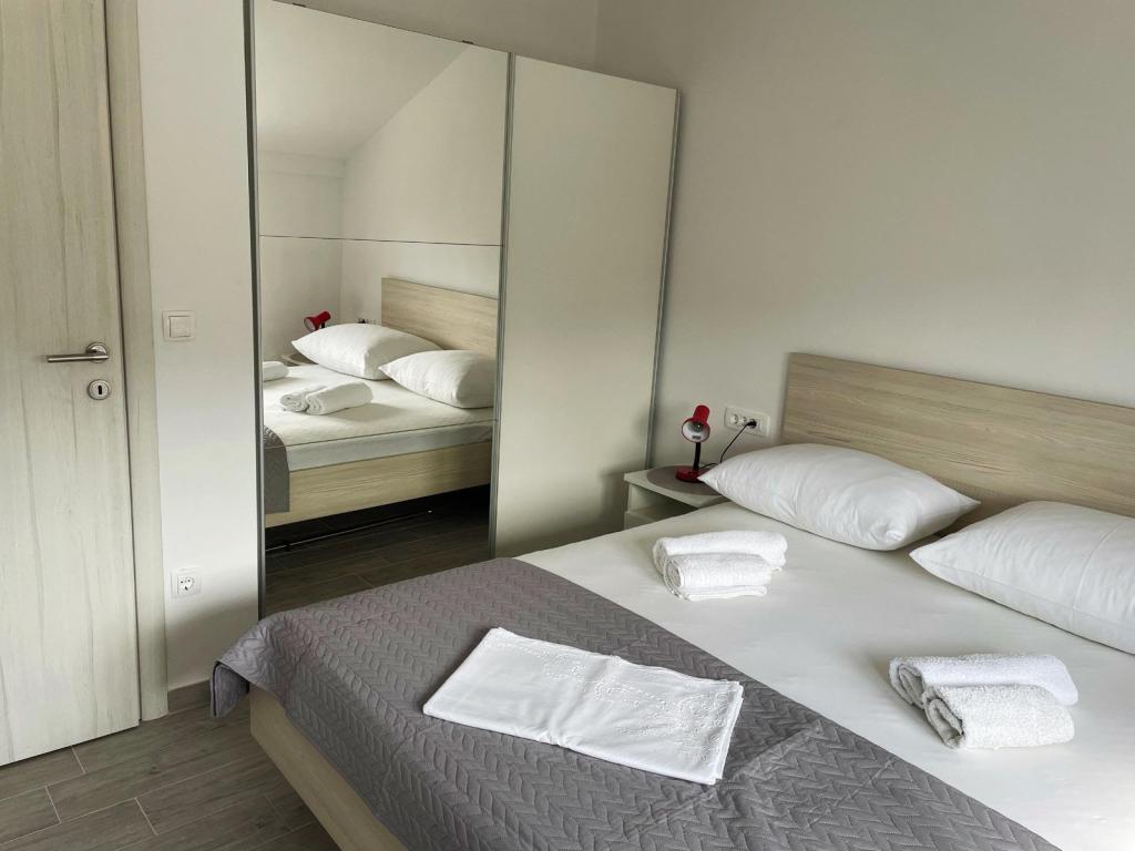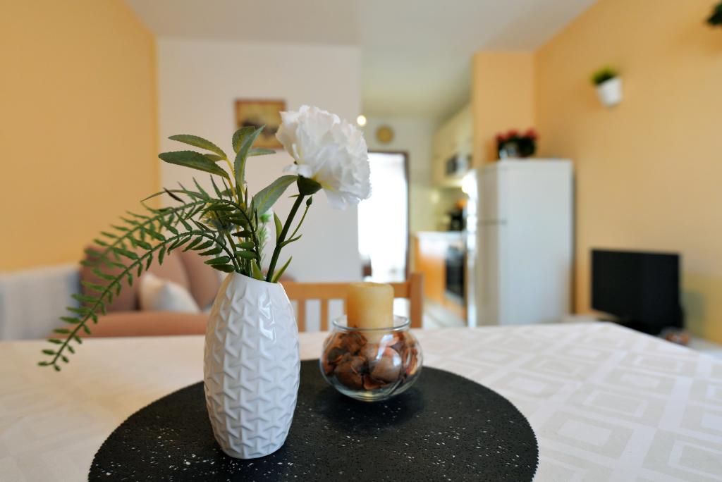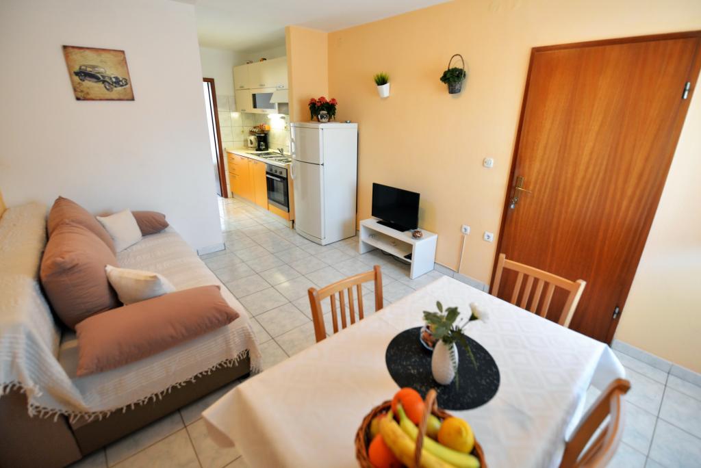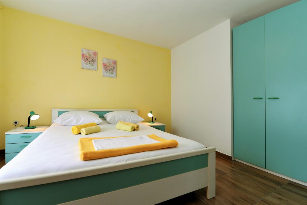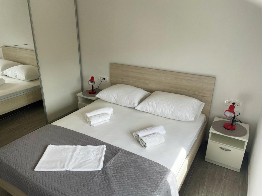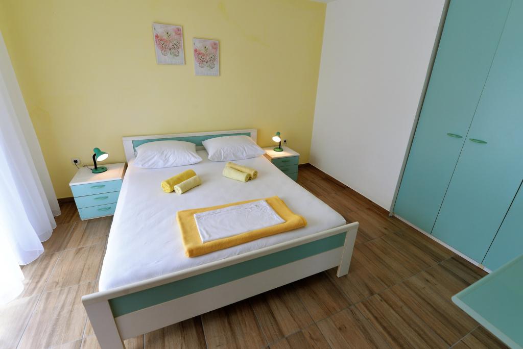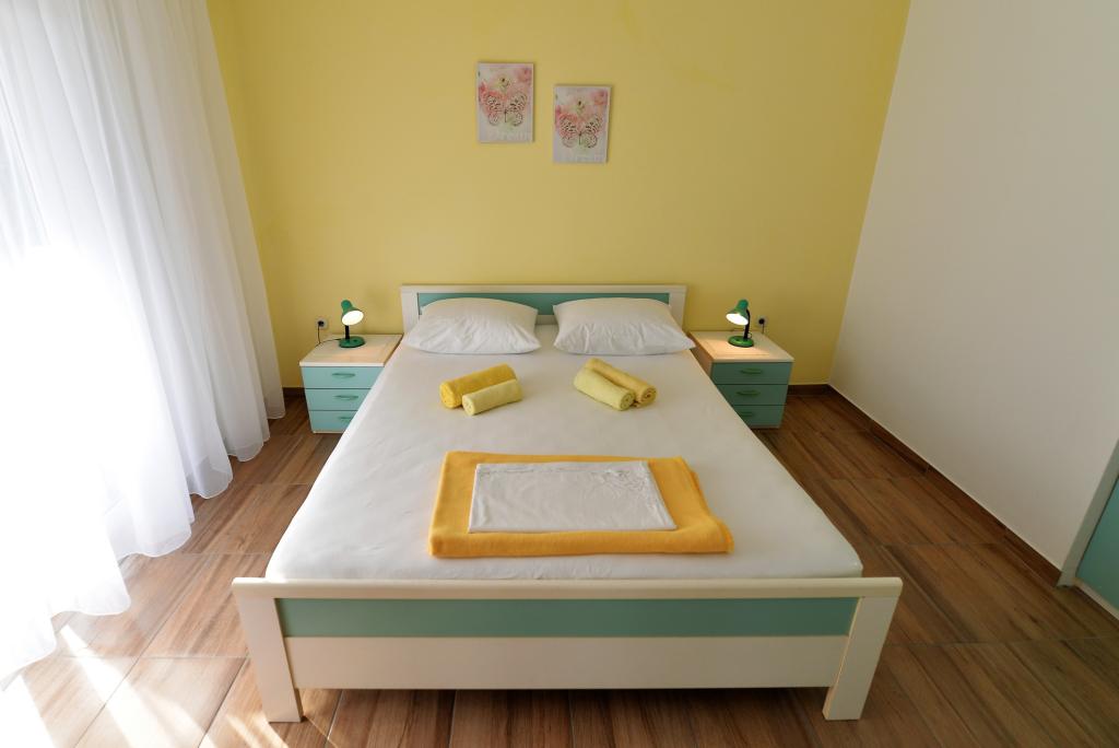 Naši apartmaji se nahajajo v samem centru mesta. Na voljo so štirje apartmaji, dva enosobna in dva dvosobna. Imajo čudovit pogled na morje, kar je zelo privlačno za naše goste, od katerih se nekateri vedno znova vračajo. Glavna plaža je oddaljena nekaj minut, center mesta pa 5 minut hoje. Naši gostje so zelo zadovoljni z našo gostoljubnostjo, imamo tudi lep velik vrt bogat s cvetjem in različno domačo zelenjavo. Zato pridite k nam, ne bo vam žal! Veselimo se srečanja z vami :)