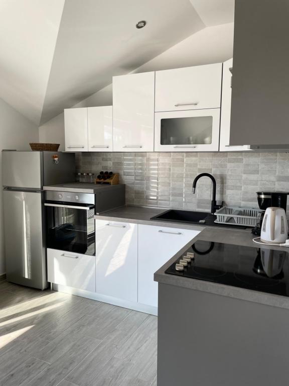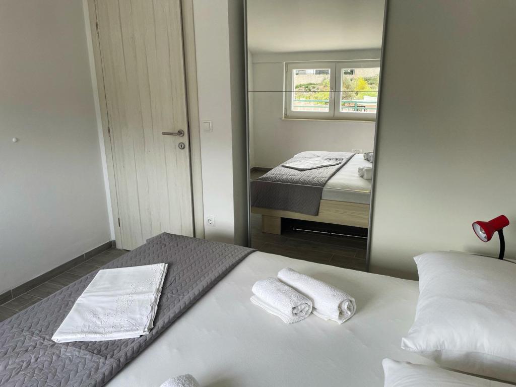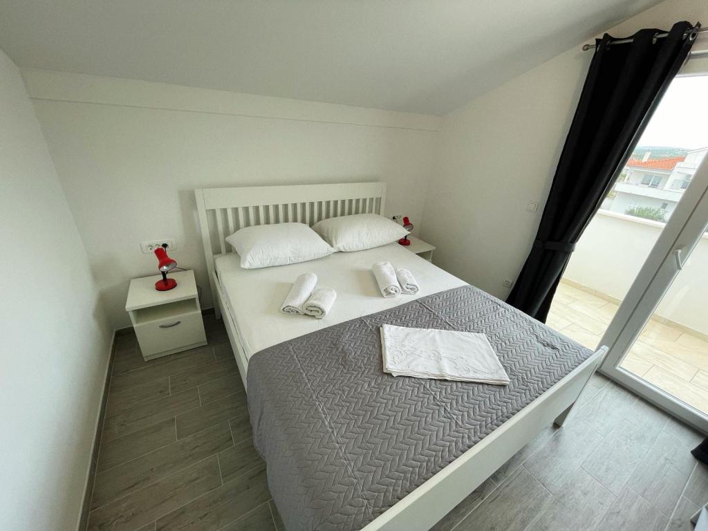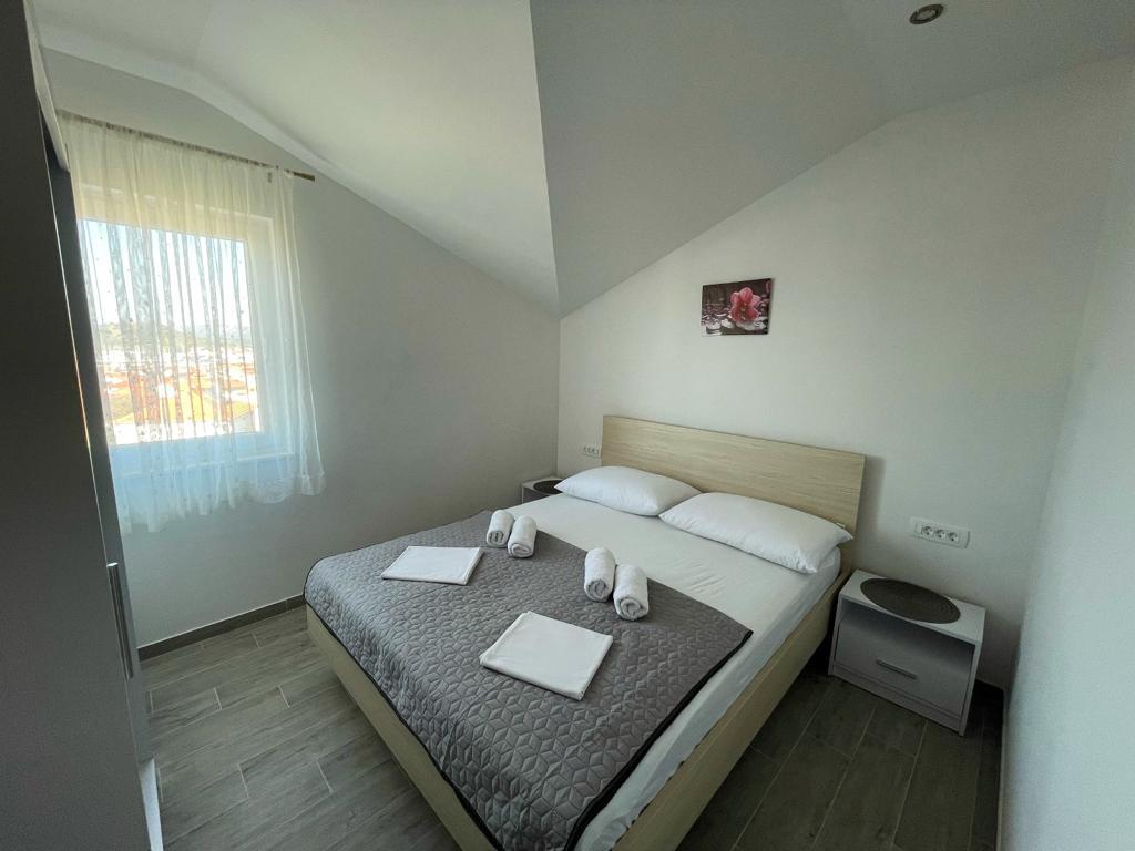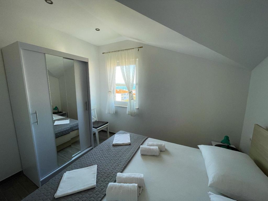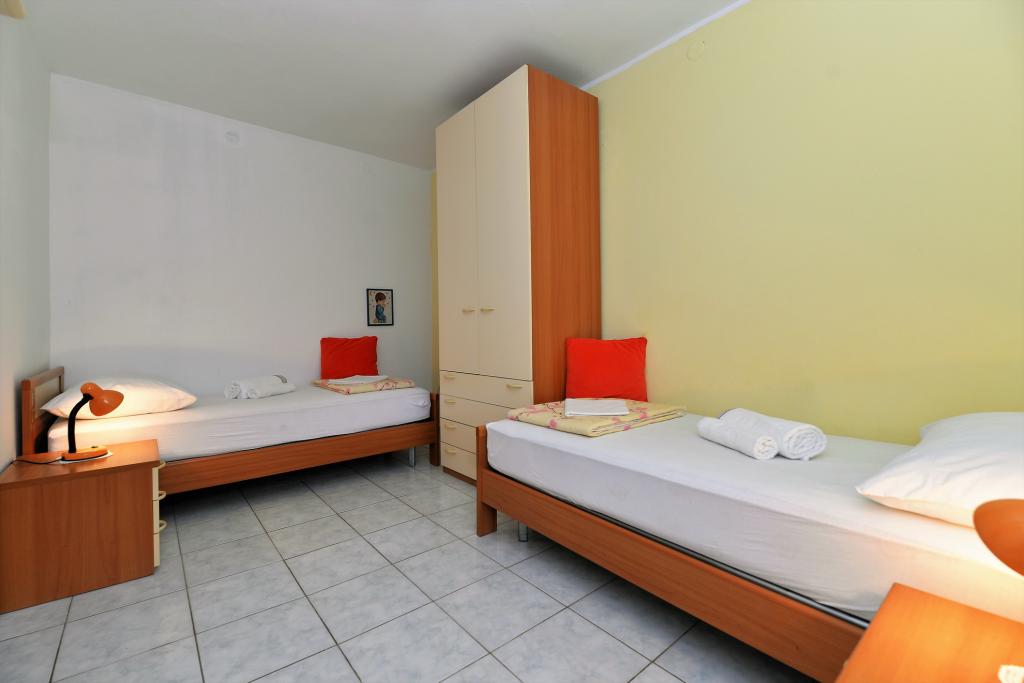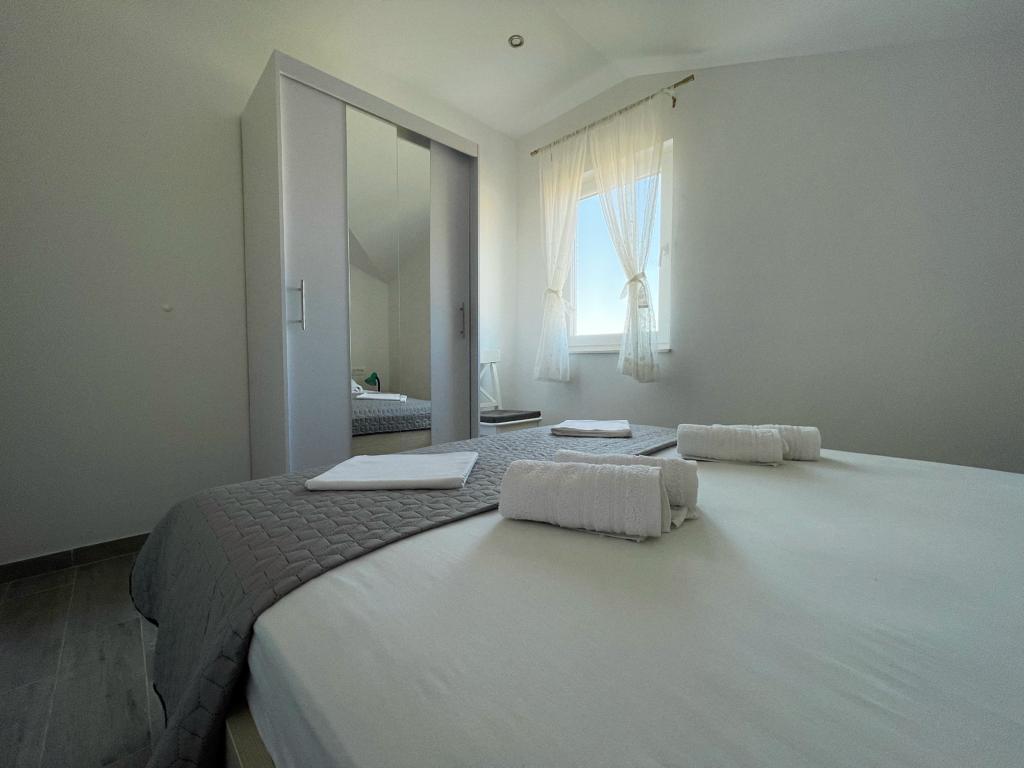 Naši apartmaji se nahajajo v samem centru mesta. Na voljo so štirje apartmaji, dva enosobna in dva dvosobna. Imajo čudovit pogled na morje, kar je zelo privlačno za naše goste, od katerih se nekateri vedno znova vračajo. Glavna plaža je oddaljena nekaj minut, center mesta pa 5 minut hoje. Naši gostje so zelo zadovoljni z našo gostoljubnostjo, imamo tudi lep velik vrt bogat s cvetjem in različno domačo zelenjavo. Zato pridite k nam, ne bo vam žal! Veselimo se srečanja z vami :)