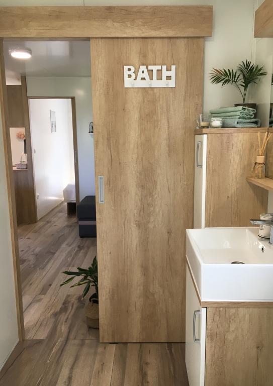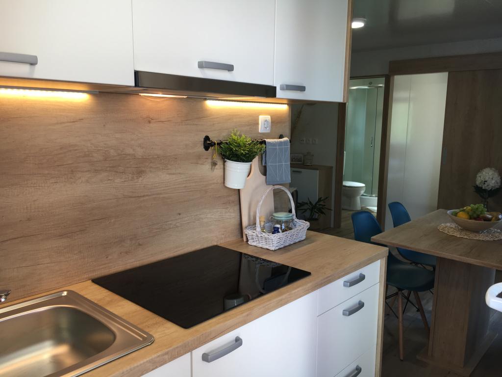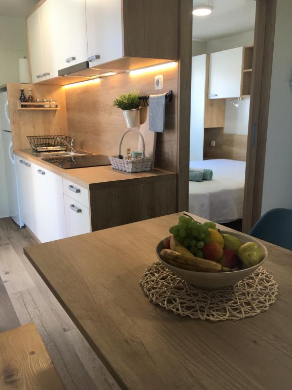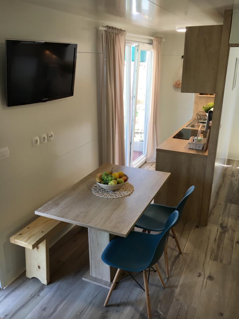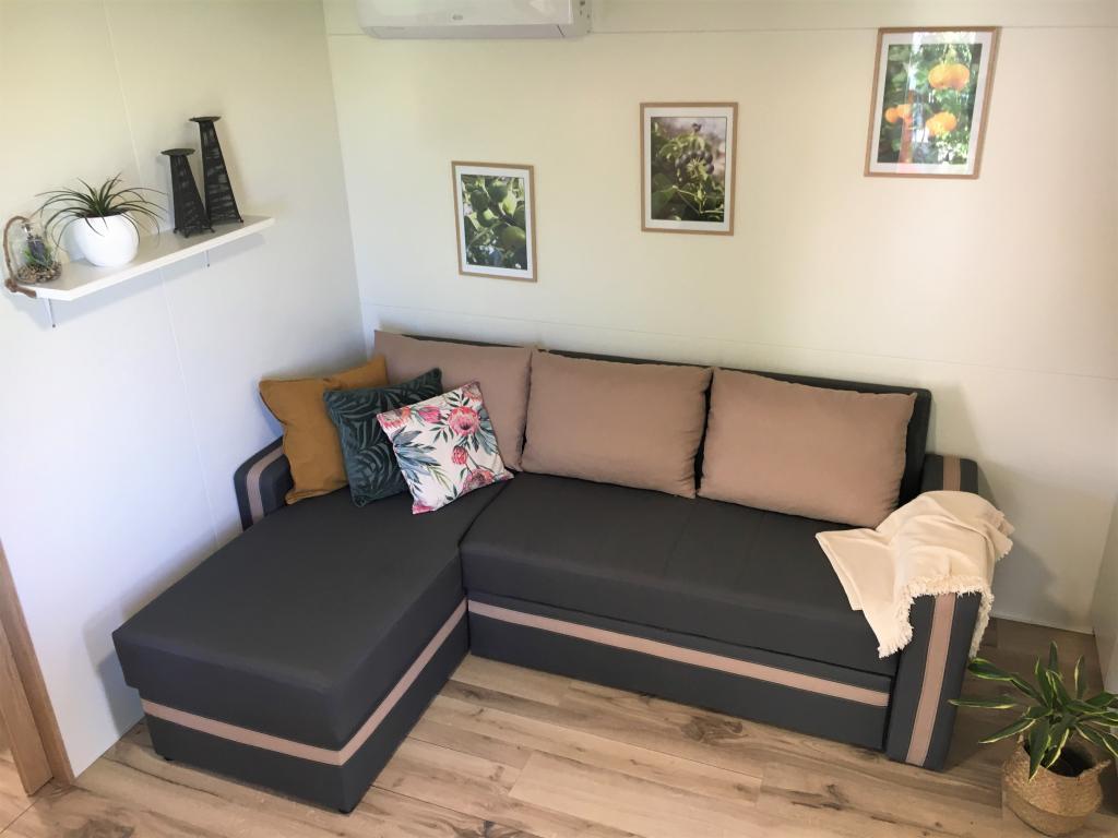 Mobilna hiška na vrtu, polnem oljk in zelenja, idealna za družine in ljudi, ki imajo radi zasebnost. Moderna in sodobno opremljena hiša, le 400 metrov od glavne, peščene plaže Slanice, in 10 minut hoje od centra. Bližina restavracij, kavarn, trgovin...