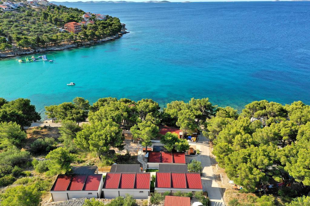 Mobilne hišice v kampu Lostura se nahajajo v neposredni bližini ene najlepših plaž na Jadranu, Slanice!. Mobilna hišica se nahaja le 30 m od morja in 200 m od peščene plaže Slanica. Hiša ima 40 m2 veliko teraso velikosti 20 m2. Hiša ima dve spalnici, eno z zakonsko posteljo (160x200) in sobo z dvema enojnima posteljama (80x200). V dnevni sobi je kotni kavč, ki se lahko uporablja kot dodatno ležišče za eno odraslo osebo ali dva majhna otroka. Kuhinja je popolnoma opremljena z vsemi potrebnimi aparati (hladilnik z zamrzovalnikom, pečica, mikrovalovna pečica, pomivalni stroj, grelnik vode, aparat za kavo). Kopalnica s tušem, pralnim strojem, sušilcem za lase, kopalniškimi dodatki. V dnevni sobi je TV s satelitskim sprejemnikom, brezplačen internet, klimatska naprava za hlajenje in ogrevanje. Na terasi je jedilna miza s stoli in ležalnik za sončenje in uživanje v čudovitem razgledu na Kornate in plažo Slanica. Parkirno mesto se nahaja v neposredni bližini hiše.