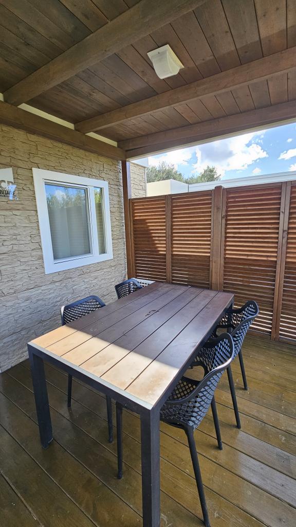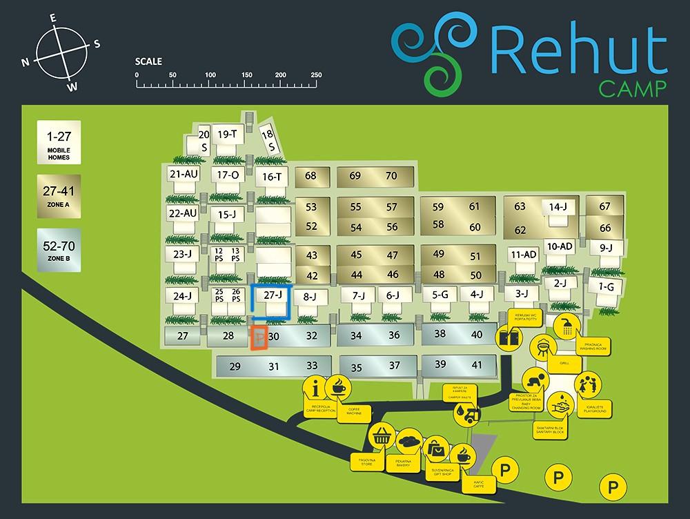 Mobilna hišica Tara se nahaja v kampu Rehut, v zalivu Slanica na otoku Murter. Slanica je najlepši zaliv na Murterju, znan po svoji turkizni barvi in kristalno čistem morju. Obdan je z borovim gozdom, zaradi česar je idealen za družinske počitnice. Stranski deli plaže so skalnati, kar vam nudi pobeg od gneče in uživanje v senci borovcev s pogledom na Narodni park Kornati. Prodnata plaža je od hiše Tara oddaljena 70 m.Mobilna hiška Tara (35,40 m2) je luksuzno opremljena mobilna hišica s pokrito teraso (15 m2) z mizo, stoli in ležalnikom. Hiša ima vgrajen pretvornik in je zaradi odlične toplotne izolacije udobna za bivanje tako poleti kot pozimi. Koča ima brezplačen Wi-Fi, prostor je klimatiziran, opremljen s posteljnino in brisačami ter ima brezplačno parkirišče pred samo kočo.