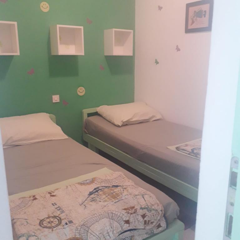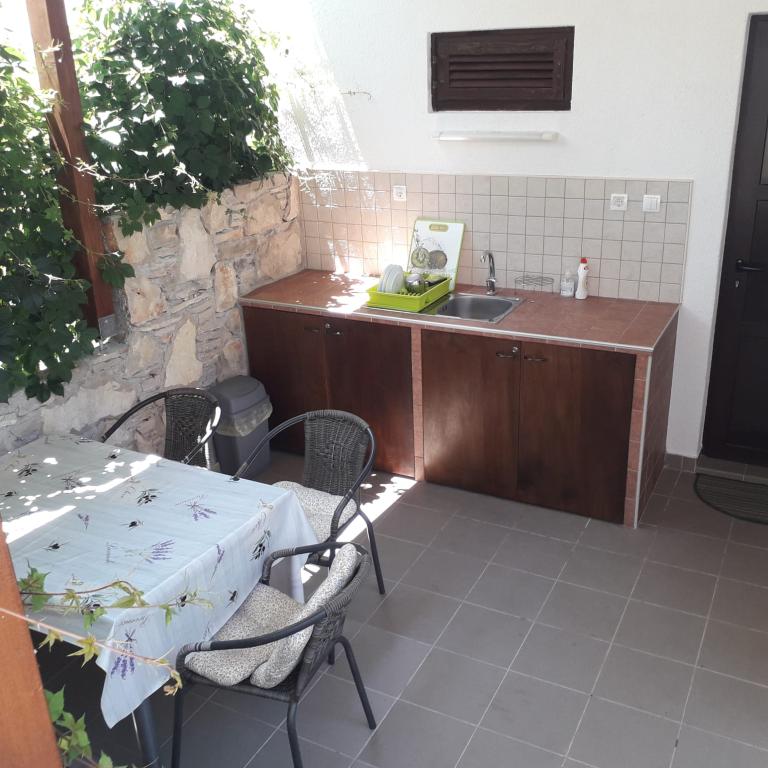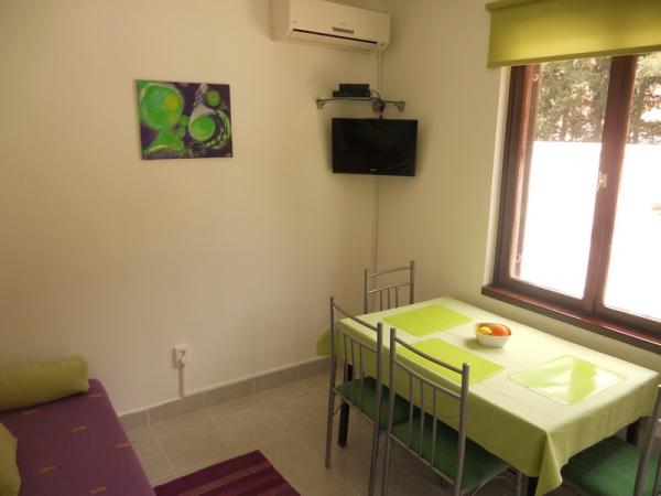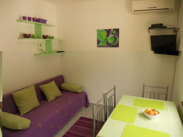 Zeleni apartma je za 4 do 5 oseb z dvema spalnicama, dnevno sobo, kuhinjo, kopalnico, teraso in balkonom. Apartma ima tudi balkon in teraso, kjer lahko gostje jedo na prostem v senci. Modri apartma je za 4 osebe z eno spalnico, dnevno sobo, kuhinjo, kopalnico in teraso. Modri apartma ima tudi pomivalni stroj. Apartmaji so moderni, nedavno prenovljeni in stilsko opremljeni. Večina pohištva je novega in posebej izdelanega za vsak apartma. Plaža je oddaljena 200 m in do nje se lahko sprehodite skozi borov gozd. V bližini ni prometne ceste. Trgovina je oddaljena približno 50 m, bližnja restavracija pa je 200 m od apartmaja. Drugi objekti na plaži vključujejo diskoteko, več kavarn in pekarno. Poleg Nečujma na Šolti priporočamo obisk Stomorske, Maslinice in številnih skritih zalivov.