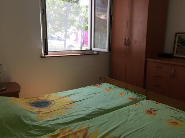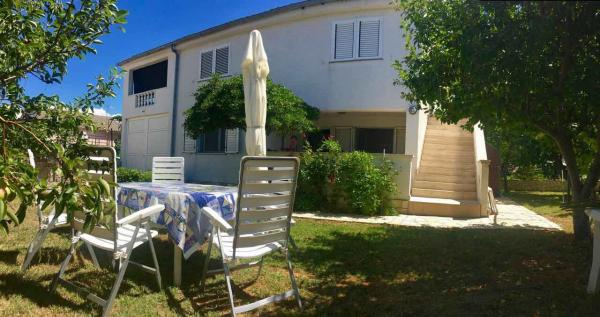 Popolnoma sodoben apartma v pritličju, dve ločeni spalnici z zakonskimi posteljami.Lep velik vrt. Objekt se nahaja 2 min. sprehod do morja in plaže. Terasa-loža z vrtno garnituro in vrtno garnituro z delom vrta samo za vašo uporabo.Žar in trampolin za otroke. Hišni ljubljenčki so dobrodošli. Parkirišče na dvorišču. Klima, pralni stroj.