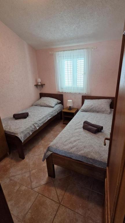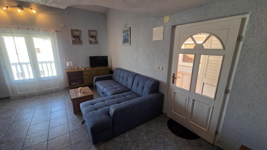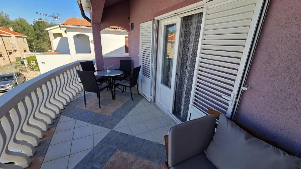 Apartma je sestavljen iz dveh sob, ena soba ima zakonsko posteljo, druga soba pa dve ločeni postelji, kopalnice, dnevne sobe s kuhinjo in velike terase. Parkirišče za avto ob apartmaju. Žar, klimatska naprava, wifi. Oddaljenost od morja 5 minut lahkega sprehoda, 10 minut hoje do centra mesta in trgovin. V bližini je čudovit ogromen borov gozd. Mirno in tiho okolje.