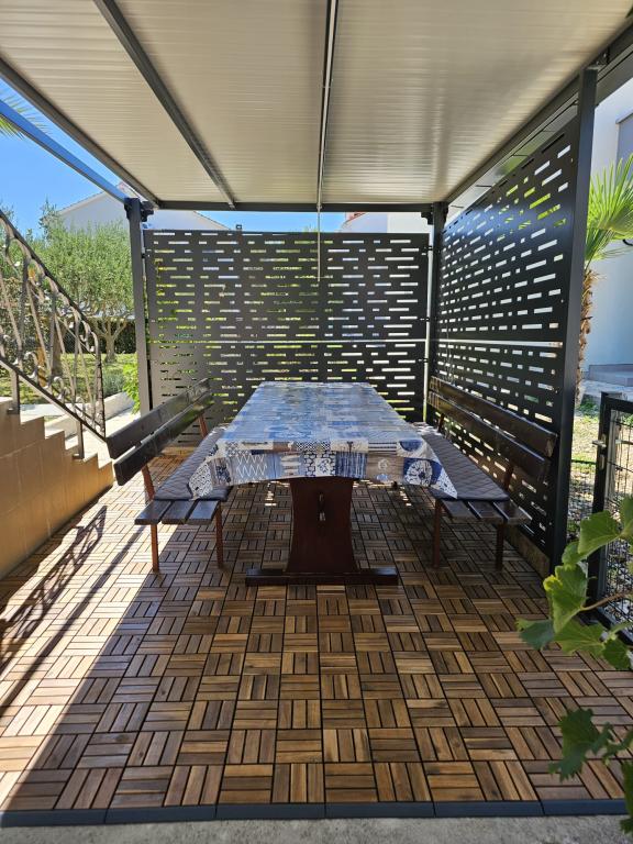 Ta namestitev je kot nalašč za počitnice! Veliko dvorišče s figami in oljkami, zelo blizu plaže, ograjena posest. Nič nam ni manjkalo. 2 prijetni terasi. praktičen zunanji tuš. Zelo smo uživali na počitnicah.