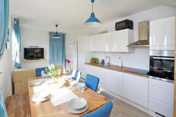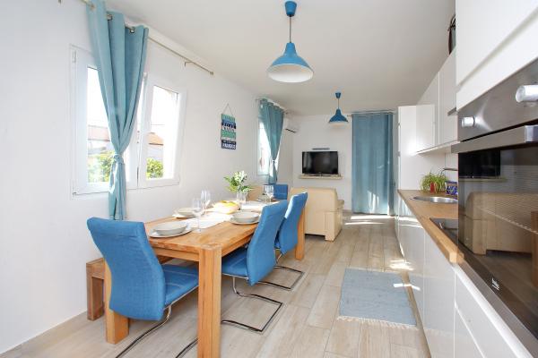 Moderno opremljen apartma se nahaja v mirnem delu starega mestnega jedra Nina, oddaljeno od morja 200 metrov, središče Nina pa je 4 minute enostaven sprehod. Apartma ima 150 m2, v mirnem okolju z dvema velikima terasama, kjer lahko uživate v soncu in mirnih večerih. Apartma je prostoren, ima veliko kuhinjo / dnevno sobo / wc, tri luksuzne spalnice in dva stranišča! Peščena plaža traja 15 minut hoje in 5 minut vožnje z avtomobilom. Apartma vključuje klimatsko napravo, pralni stroj in parkirišče pred apartmaju, vse vključeno v ceno!