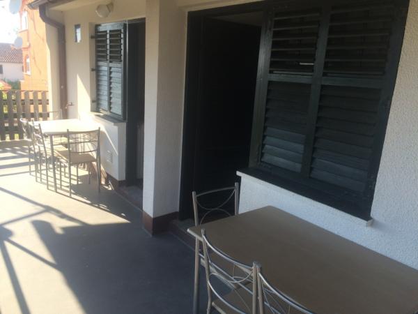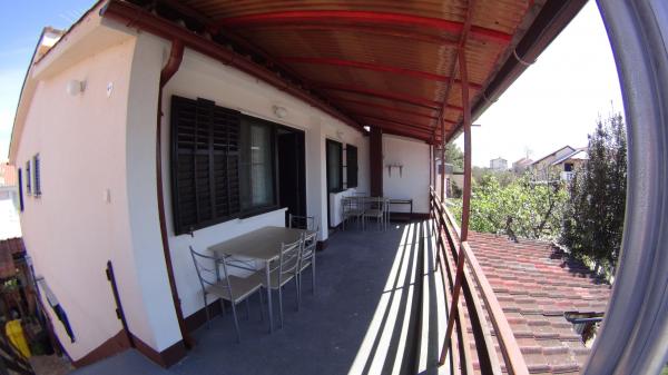 Apartmaji v mirni ulici, ki se nahaja le 100m od morja. Vsak apartma ima dnevno sobo, spalnico, kopalnico z WC in teraso. Apartmaji so enaki in klimatizirane. TV z digitalno satelitsko in vseh deželnih programov. Hladilnik z zamrzovalnikom, aparat za kavo, žar na vrtu, posodo, posteljnino. Za goste parkiranje. Prijazni gostitelji, mir in prijetno vzdušje. Idealno za družine z otroki. Market je le 50m, lokalno sadje in zelenjava. V bližini starega hrvaško kraljevsko mesto Nin, Zadar privlačnih destinacij, moderno turistično naselje Zaton, letališča, bolnišnice, več nacionalnih parkov (Kornati, Krka, Paklenica).