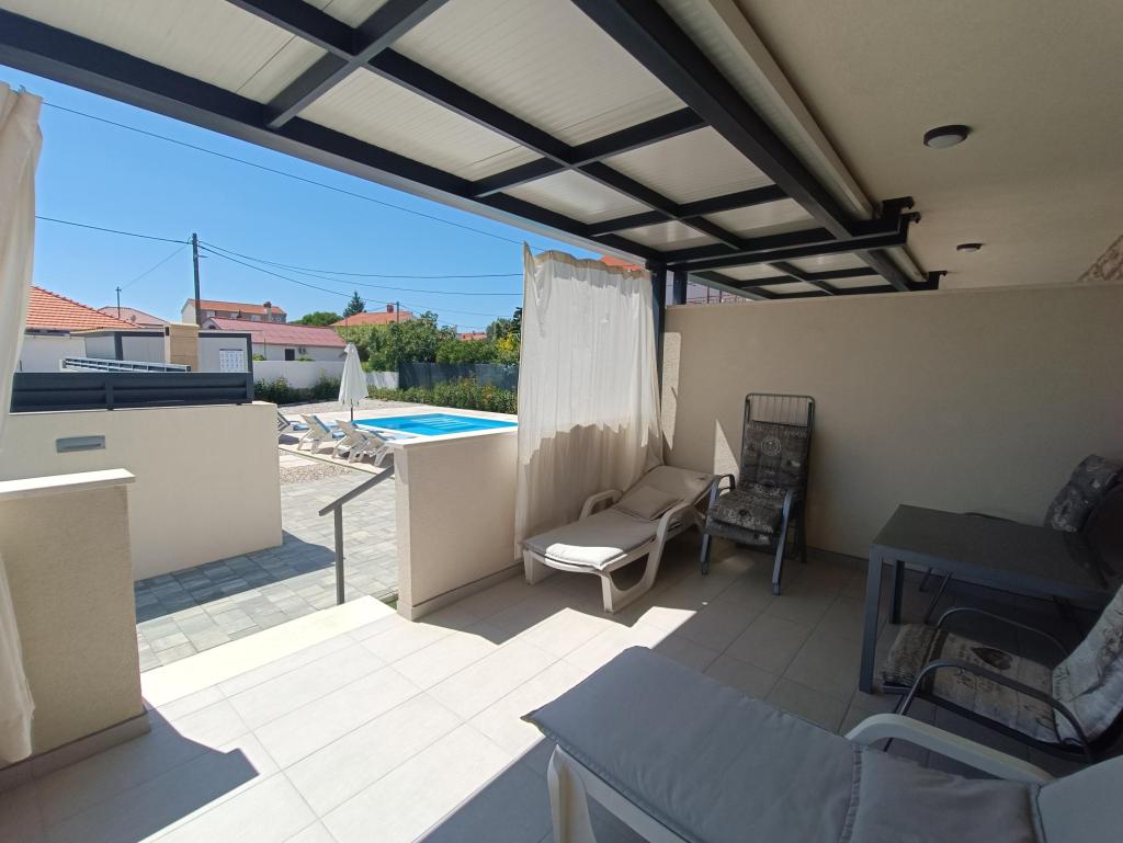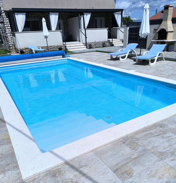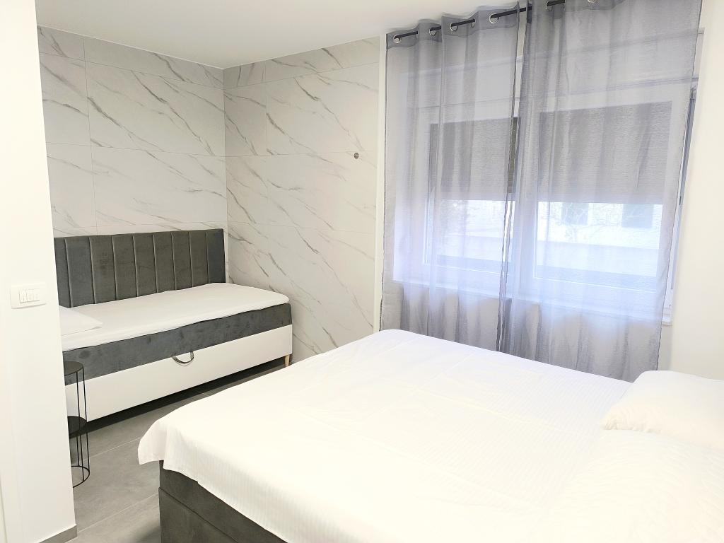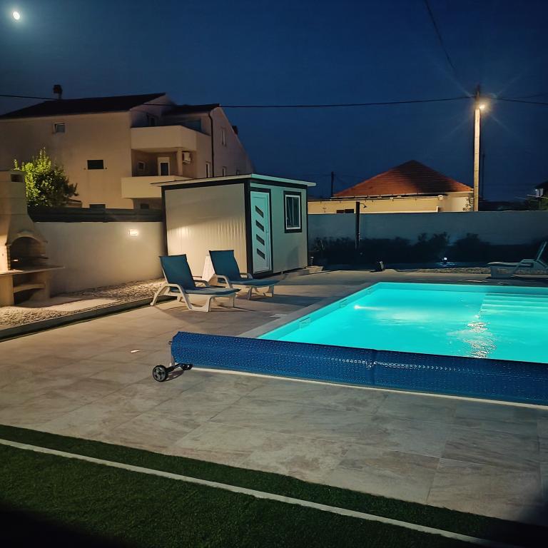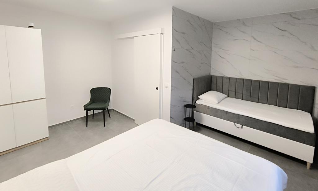 Ogrevan bazen (zaprt 15.10. 2025 - 1.5. 2026) Dobrodošli v apartmajih Royal Place, ki se nahajajo v očarljivem kraljevskem mestu Nin, le 16 km od zgodovinskega mesta Zadar. Ponujamo vam dva luksuzna apartmaja. Enosobni (družinska soba, zakonska postelja + enojna postelja) in dvosobni apartmaj v pritličju na mirni lokaciji, le 200 metrov od slikovite obmorske promenade, lokalnih restavracij in centra mesta. Plaža je oddaljena 900 metrov. Veliko nadstropje stavbe vključuje mirno, ograjeno dvorišče, polno bujnega sredozemskega rastlinja. Poleg tega je na voljo ogrevan bazen s slano vodo, prostor za sončenje z ležalniki in senčniki, zunanji tuš, žar. Zgornje nadstropje stavbe nima dostopa.