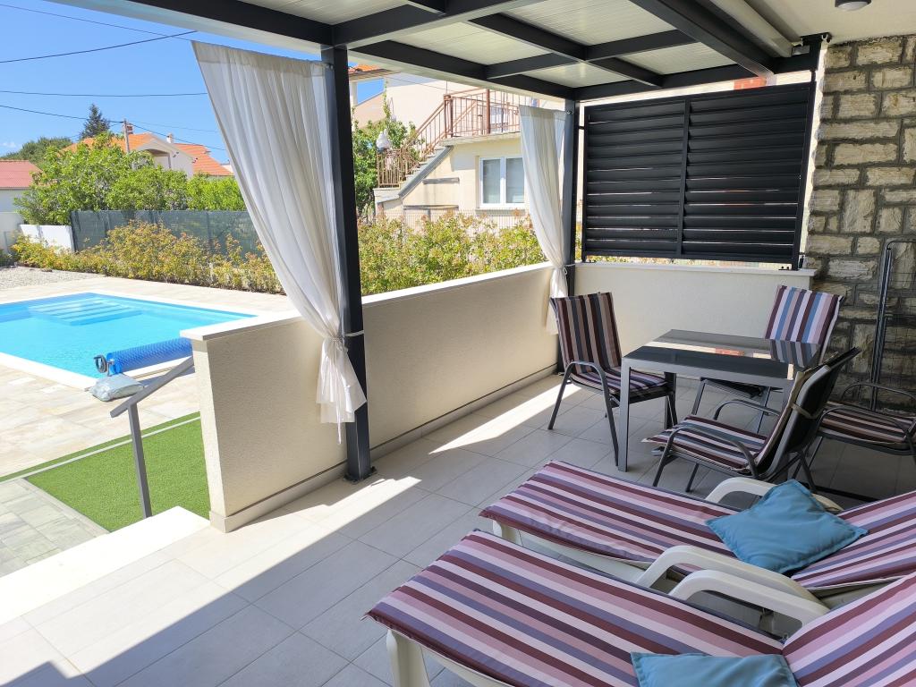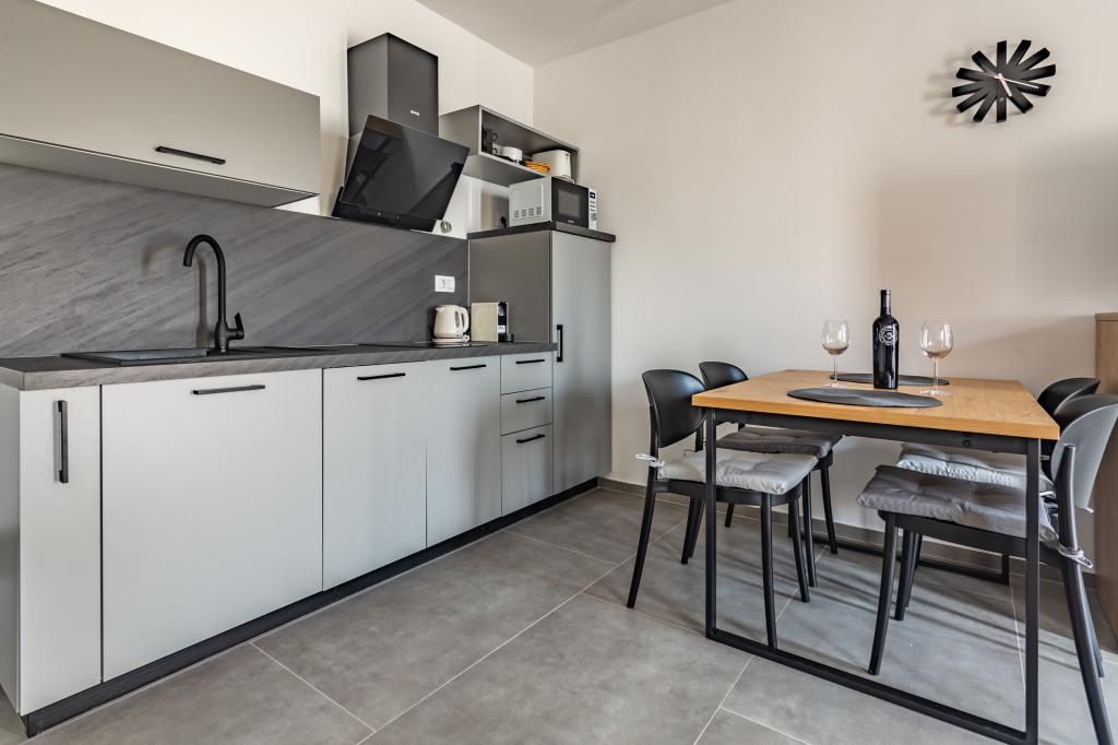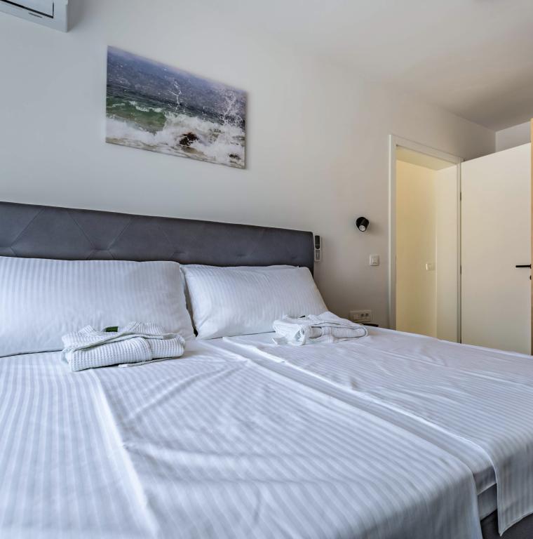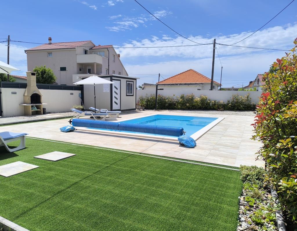 Ogrevan bazen (zaprt 15.10. 2025 - 1.5. 2026) Dobrodošli v apartmajih Royal Place, ki se nahajajo v očarljivem kraljevskem mestu Nin, le 16 km od zgodovinskega mesta Zadar. Ponujamo vam dva luksuzna apartmaja. Enosobni (družinska soba, zakonska postelja + enojna postelja) in dvosobni apartmaj v pritličju na mirni lokaciji, le 200 metrov od slikovite obmorske promenade, lokalnih restavracij in centra mesta. Plaža je oddaljena 900 metrov. Veliko nadstropje stavbe vključuje mirno, ograjeno dvorišče, polno bujnega sredozemskega rastlinja. Poleg tega je na voljo ogrevan bazen s slano vodo, prostor za sončenje z ležalniki in senčniki, zunanji tuš, žar. Zgornje nadstropje stavbe nima dostopa.
