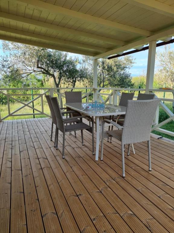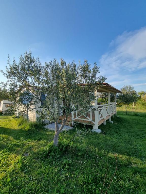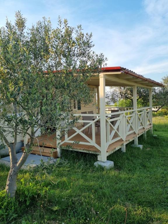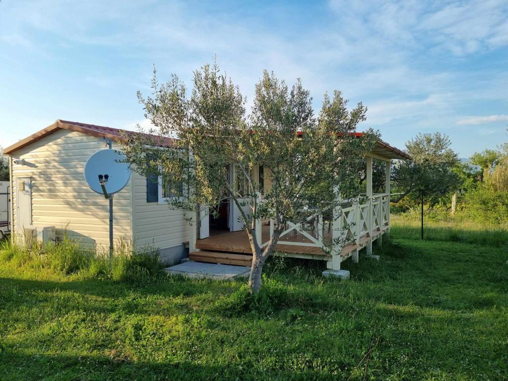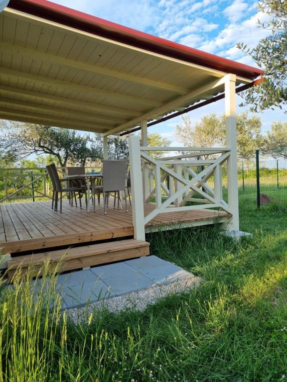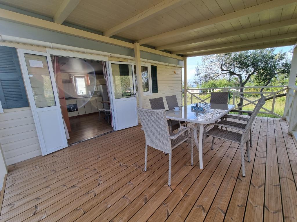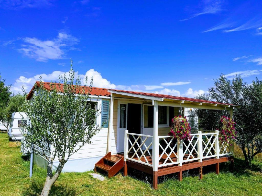Ob vhodu v kamp Nin se nahajajo moderno opremljene mobilne hišice. S terase se ponuja pogled na morje in staro mestno jedro Nina. Objekti se nahajajo 5 minut hoje od plaže Kraljičina in 10 minut hoje od centra mesta z vsemi potrebnimi vsebinami. Hiše se nahajajo v mirnem in sproščujočem okolju, obdane z oljkami.