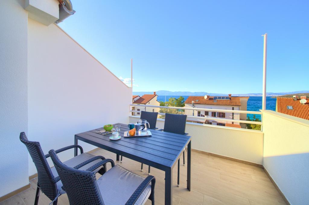 Apartmaji Meri se nahajajo v družinski hiši, ki se nahaja v centru Njivice. Položaj hiše je odprta, ob morju in 50 metrov od plaže in v neposredni bližini vseh potrebnih objektov (trgovine, restavracije, lekarna, zdravnik, športne aktivnosti, ipd). Apartmaji so obnovljena leta 2017. g. Vsak apartma ima teraso, kjer se lahko sprostite in uživate v miru. Oba terase so povezani z vrtom, ki je zasajeno z mediteranskim rastlinjem. Parkirišče se nahaja neposredno ob apartmajih.