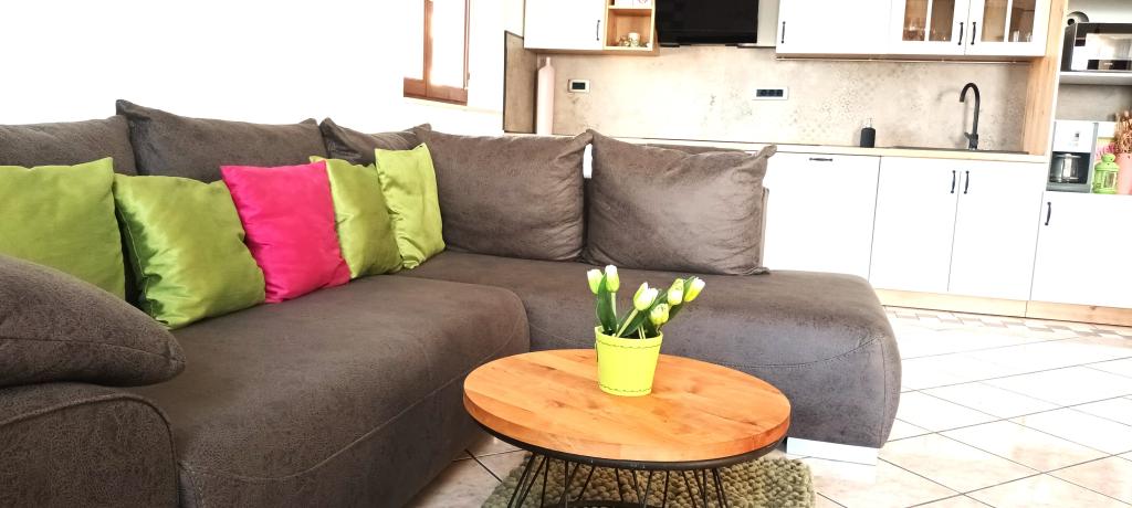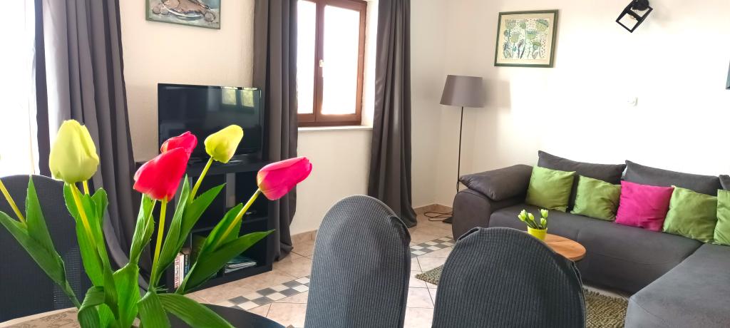 POSEBNA PONUDBA ZA POČITNICE tedna (18. -25. 6.) 7 noči za ceno 6 Apartmaji se nahajajo v prvem nadstropju hiše na hribu s pogledom na Kvarnerski zaliv. Ena od najlepših plaž v Njivice, je le 5 minut hoje do morja. V trinadstropne hiše se nahaja pet apartmajev, od katerih ima vsaka svojo lastno parkirno mesto. Največji je specialiteta hiše njena velika travnata vrt, kjer se lahko otroci varno igrajo, medtem ko pripravite žar. Stanovanje Vista je zelo prostorna, in kot že ime pove, bodo ponudili boste uživali edinstven pogled na morje, na veliko teraso natkrirvenoj. Dnevna soba in kuhinja se širijo več kot petdeset kvadratnih metrov v roza mehkih sivih odtenkov, vsak prostor v svojih barvah, z lastno kopalnico Apartma Oliva ima majhno teraso, kjer lahko izhod iz sobe, preprost in sodoben dizajn. Gostom je na voljo brezplačen brezžični internet in brezplačno klimatsko napravo.