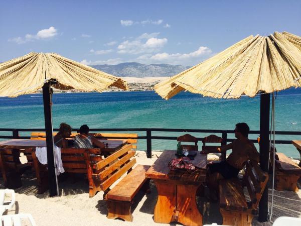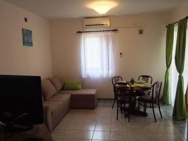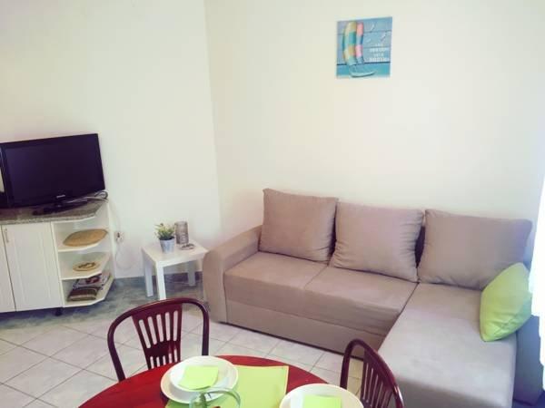 Turistična taksa nije vključena v ceno.Apartma na plaži za 4 osebe. Možnost dodatnega ležišča. 45m2, terasa, žar, brezplačno parkiranje, wi-fi, pogled na morje s terase. Pralni stroj, aparat za kavo, posteljnina in brisače vključeni. Blizu centra (1km) ob morju. Udobno in udobno za večjo družino. Obdani s plažami na obeh straneh.